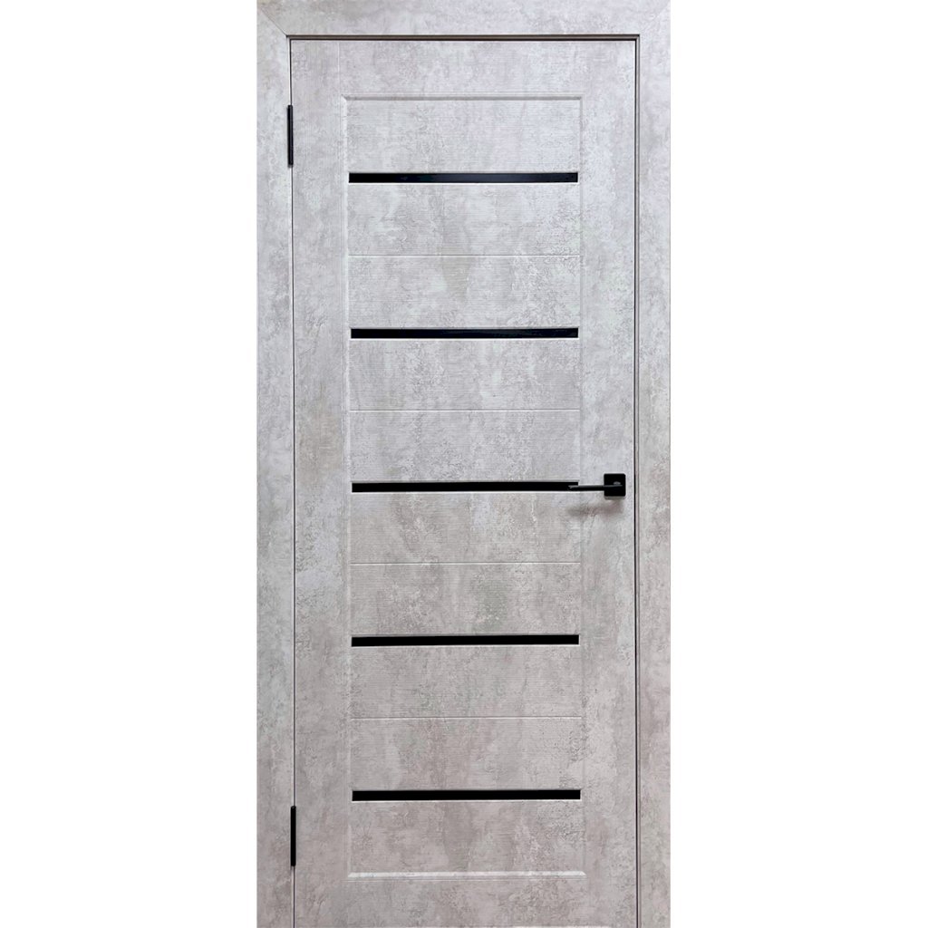 Изготовлено из массива сосны методом сращивания, облицовано с двух сторон МДФ, покрытие ПВХГлухое с вставками (ABS кромка из термопластичного полимера)Высота: 2000 мм.Ширина: 800 мм.Толщина: 36мм.Цвет: бетон, стекло - черное