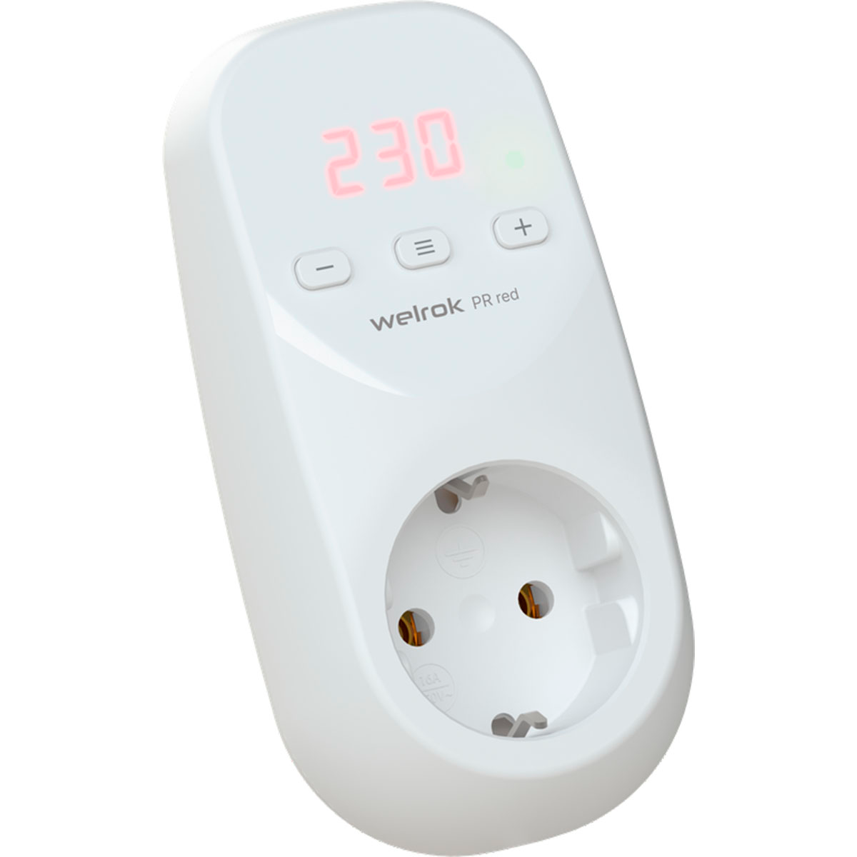 Welrok PR red Реле напряжения в розетку, реле напряжения для защиты оборудования подключаемого в одну розетку. 16Ампер, 3000ВА. Welrok PR red отличается от реле на DIN-рейку D2 только корпусом. Функционал и схемотехника у них одинаковые. Для увеличения долговечности внутреннего реле добавлено включение нагрузки при переходе синусоиды напряжения близко к нулю. Оптимальный вариант защиты от перенапряжения для холодильника, стиральной машины, компьютера и т.п.При включении удлинителя нужной длины и нужного количества гнезд, возможна одновременная защита нескольких единиц оборудования, например, компьютера, монитора, принтера. Главное, не превышать суммарную нагрузку по мощности, это 3000 ВА (16 Ампер).Реле контроля напряжения Welrok PR red работает по принципу отсекателя. Когда напряжение в сети выходит за пределы, которые задал пользователь, реле напряжения RBUZ отключает напряжение. Когда же напряжение восстанавливается – Welrok PR red возобновляет питание потребителей. В данный момент во всех реле напряжения Welrok коммутирующим элементом является электромагнитное реле.