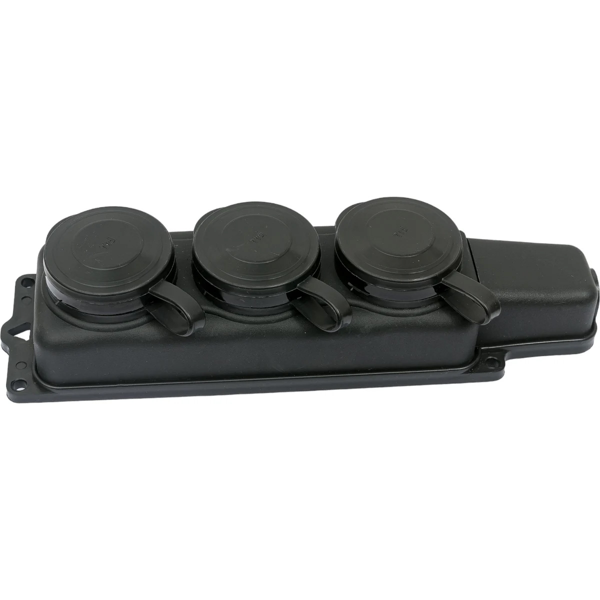 Розетка 3-местная переносная (с/з, брызгозащищенная) каучук, цвет черный, Юпитер