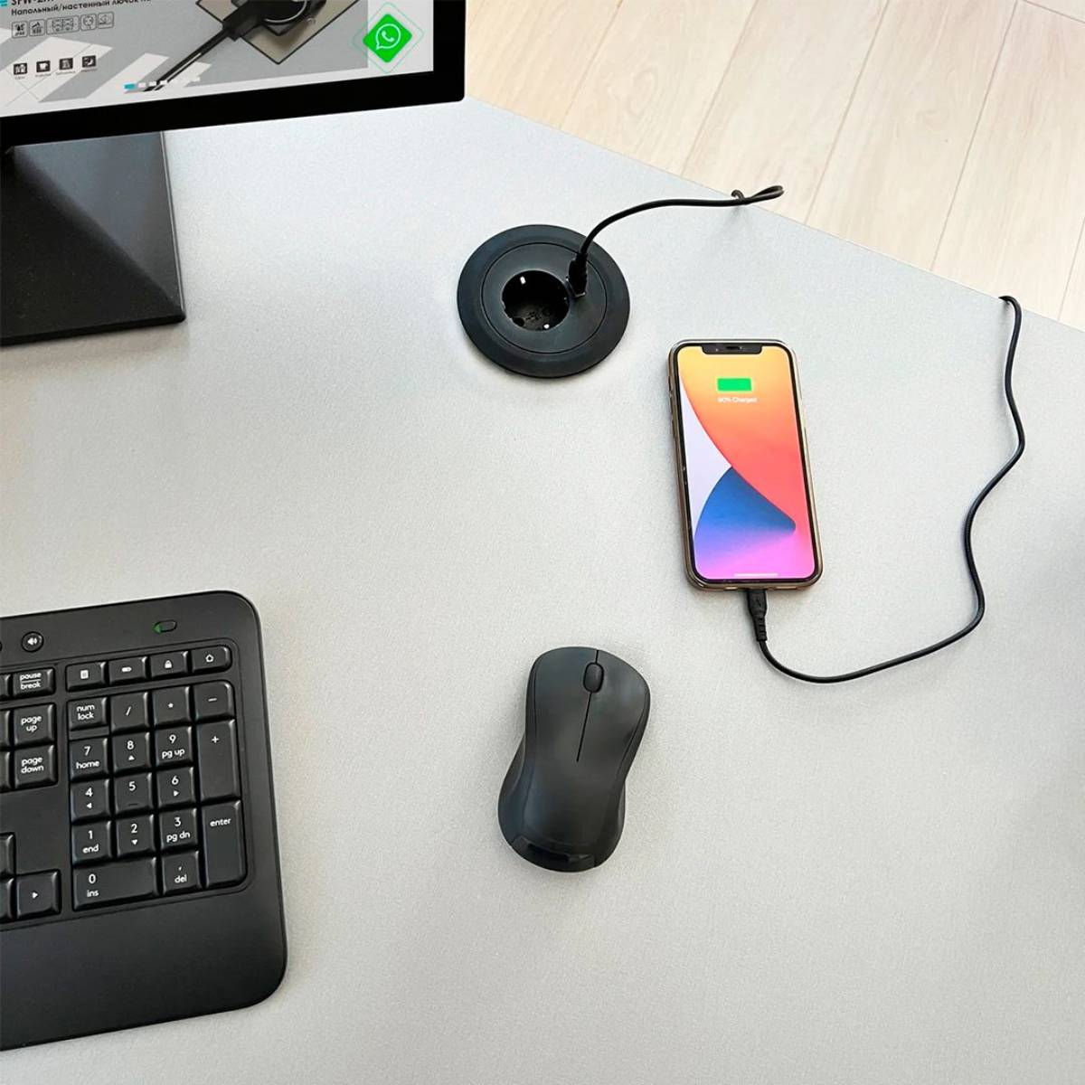 Настольный розеточный блок Shelbi обеспечивает удобный доступ к электропитанию и USB-порту прямо на вашем рабочем столе. Снабжен одной силовой розеткой и одной USB-розеткой, что позволяет одновременно подключать электроприборы и заряжать мобильные устройства. Черный цвет блока сочетается с большинством интерьеров офисных помещений. Выходное напряжение: 5 ВВыходной ток: 2,1 АНастольный блок предназначен для фиксированного монтажа в столешнице через отверстие диаметром 60 мм.