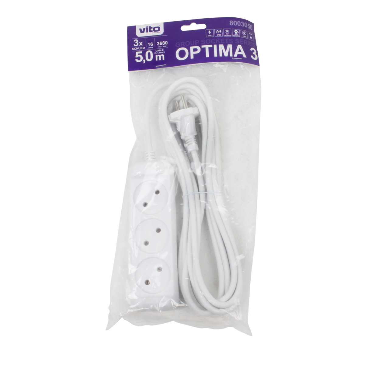 Удлинитель б/з 3 входа 5 м OPTIMA 8003050 Vito Optima 3