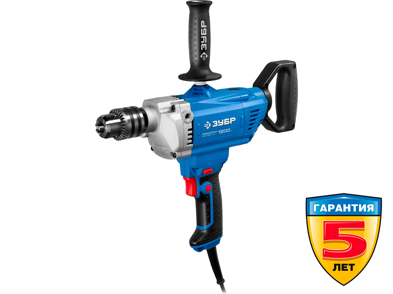 Лидер по соотношению мощность/удобство при сверлении отверстий в различных материалах, а также перемешивании жидких растворов ЛКМ. Взяв ее в руки, понимаешь - таким и должен быть настоящий инструмент: крепким, бескомпромиссным в работе и просто красивым. ОсобенностиНеимоверный крутящий момент для любых Ваших задачМногоцелевая дрель-миксер идеально подходит для сверления отверстий большого диаметра и размешивания различных растворов, краски и бетонаВысокий крутящий момент позволяет сверлить глубокие отверстия большого диаметра, например, сверлом Левиса и размешивать различные ЛКМ и даже бетонЭлектронная регулировка частоты вращения позволяет начать размешивание без разбрызгивания и производить точное сверление отверстийРеверсирование вращения помогает как извлекать сверла из глубоких отверстий, так и менять направление перемешивания простым переключением рычажкаМеталлический корпус редуктора обеспечивает большую стабильность геометрических размеров передачи, лучшее охлаждение редуктора в условиях повышенных нагрузокУсиленная основная рукоятка с удобным хранилищем ключа патронаКлючевой патрон с максимальным диаметром 16 мм под любые хвостовики насадокФиксатор выключателя для длительных работДополнительная эргономичная рукоятка с возможностью установки в трех положениях позволяет надежно удерживать изделие с таким высоким крутящим моментомВспомогательная тыльная вращающаяся рукоятка обеспечивает удобный хват при использовании изделия в качестве миксераАвтоматически отключающиеся щетки с возможностью быстрой заменыСпециальная смазка на литиевой основе с низкой температурой застыванияКабель в резиновой изоляции с водоотталкивающей пропиткой не "дубеет" на морозеКомплектацияДрель-миксер - 1 штРукоятка дополнительная - 1 штКлюч патрона - 1 штРуководство по эксплуатации - 1 штХарактеристикиТип инструмента дрель-миксерМощность, Вт 1200Макс. число оборотов холостого хода, об/мин 0-850Крутящий момент, Н*м 160Количество скоростей работы 1Макс. диаметр сверления (дерево), мм 40Макс. диаметр сверления (металл), мм 16Тип патрона ключевойДиаметр патрона, мм 3-16Посадка патрона, дюйм 1/2Режимы работы сверлениеРеверс естьМеталлический корпус редуктора естьЭлектронная регулировка частоты вращения естьБыстрая замена щеток естьАвтоматически отключающиеся при износе щетки естьФиксация кнопки включения естьДополнительная рукоятка естьНапряжение питания, В/Гц 220/50Габариты, см 43x9.5x35Масса изделия, кг 4,2Масса в упаковке, кг 4,8Гарантия: 1 год