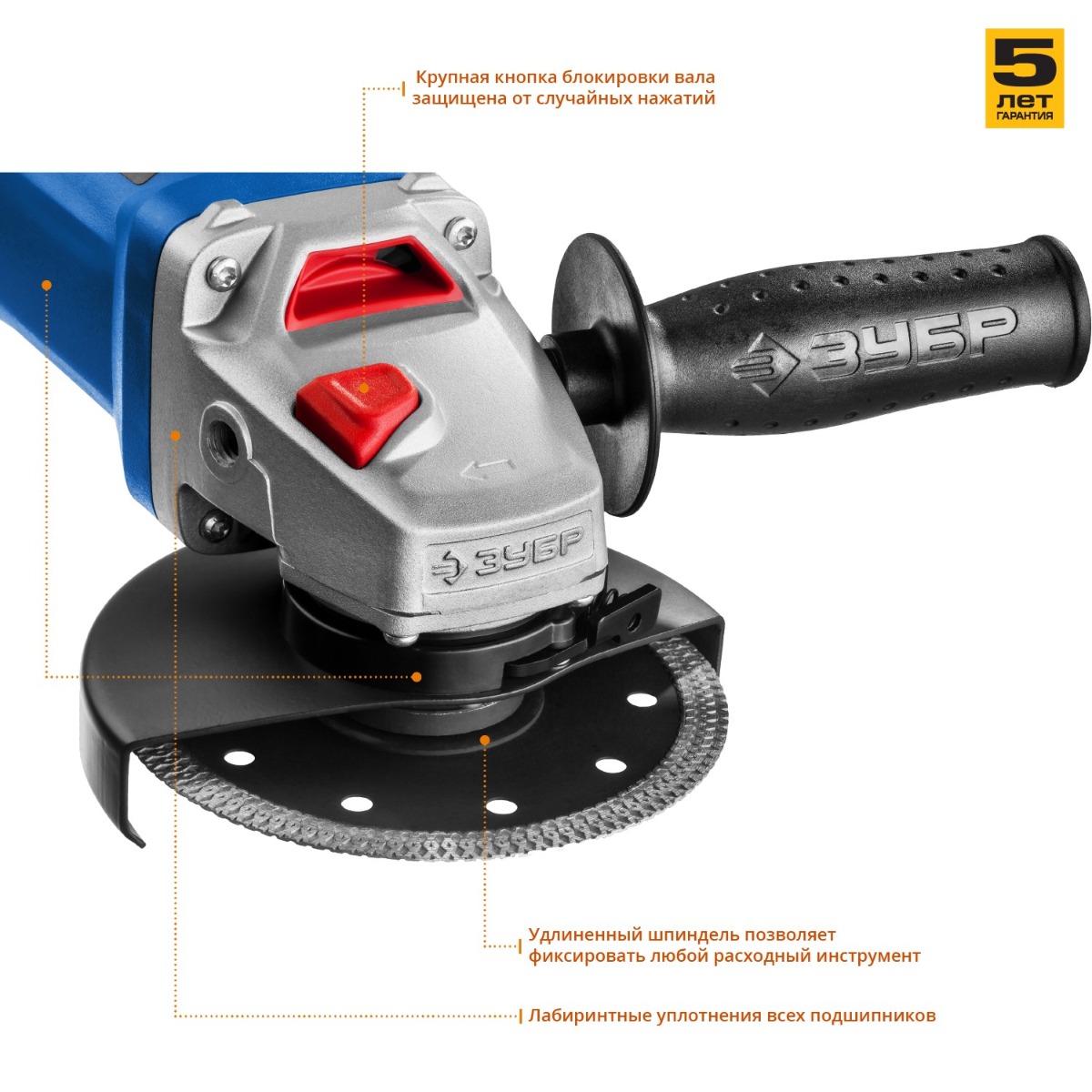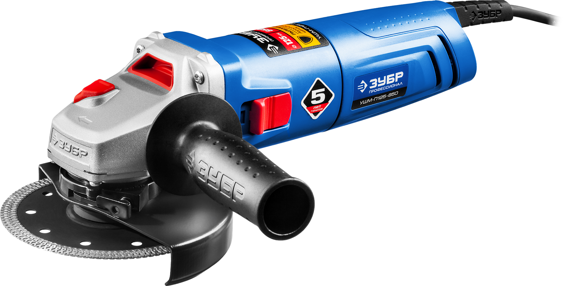Небольшая УШМ для всех видов работ. Сочетание диска 125 мм и мощности двигателя позволяет резать металл, кирпич, керамику, выполнять зачистку и шлифовку. Простота конструкции и усиленная пылезащита всех узлов гарантирует долгий срок службы даже при самых суровых условиях эксплуатации. Благодаря увеличенной мощности двигателя достигается высокая производительность.ПреимуществаКомпактная универсальная модель для эффективной работыКомпактная и маневренная модель в линейке профессиональных одноручных машин в ассортименте ЗУБР. Очень удобна для работы в стесненных условияхСамый популярный диаметр круга 125 ммСпециально разработанный корпус редуктора для улучшения теплоотвода и обеспечения прочности самого нагруженного узлаНаправляющий диффузор в системе обдува способствует стабильности температуры основных компонентовНизкий уровень шума за счет редуктора с косозубыми коническими шестернямиПоворотная с шагом 90° голова позволяет настроить изделие под левую руку или для резкиЗащитный кожух диска с мгновенной регулировкой положения удобным рычажком в одно движениеБлокировка шпинделя для быстрой замены дискаФланцы из разного материала предотвращают чрезмерное затягивание диска при работеФирменная дополнительная рукоятка, устанавливаемая в 2 положенияхЛегкое включение удобной кнопкой в одно движениеСпециальная конструкция щеткодержателя, предотвращающая повреждение коллектора при полном износе щетокПростой доступ к щеткам для заменыКабель питания с увеличенной длиной 3м в резиновой изоляцииНадежная защита основных узлов от пылиротор с капроновым бандажом и дополнительным слоем защитного лака,статор со специальным покрытием обмотки,пылезащищенный выключатель с ультразвуковой сваркой,лабиринтное уплотнение всех шариковых подшипников создает непроницаемый для пыли воздушный барьерПрименение: для зачистки, шлифовки и резки металлов, обработки бетона и камня при установке соответствующих шлифовальных, отрезных, алмазных кругов.ХарактеристикиМощность, Вт: 850Диаметр диска, мм: 125Посадочный диаметр, мм: 22.2Число оборотов, об/мин: 11000Электронная регулировка оборотов: нетРезьба шпинделя: М14Габариты, см: 36x14x10.5Масса изделия, кг: 2.2Гарантия: 1 год