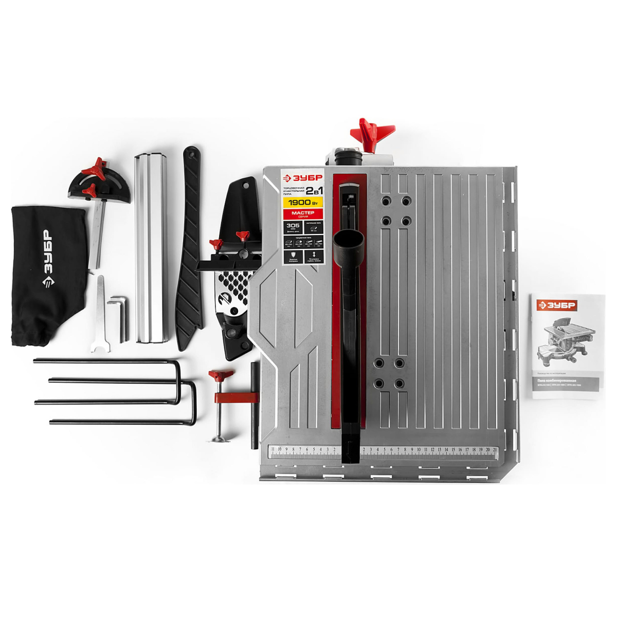 Торцовочная комбинированная пила Зубр МАСТЕР ЗПТК-305-1900 представляет собой многофункциональное устройство, сочетающее в себе настольную и торцовочную пилу. Она предназначена для различных видов продольного и поперечного пиления: прямого, косого, под наклоном и комбинированного. Для надежной фиксации заготовок предусмотрена удобная струбцина. Наличие удлинителей рабочего стола позволяет обрабатывать заготовки большой длины. Диапазон вертикального хода диска - 0-55 мм.Тип двигателя: щеточныйМощность: 1900 ВтДиаметр диска: 305 ммПосадочный диаметр диска: 30 ммРегулировка оборотов: нетРегулировка глубины реза: даНаличие подсветки: нетКомплектация:Торцовочная комбинированная пила;Пильный диск;Удлинитель стола - 2 шт.;Продольный упор;Угловой упор;Толкатель заготовки;Ключ специальный;Ключ имбусовый - 2 шт.;Ключ трубчатый;Струбцина;