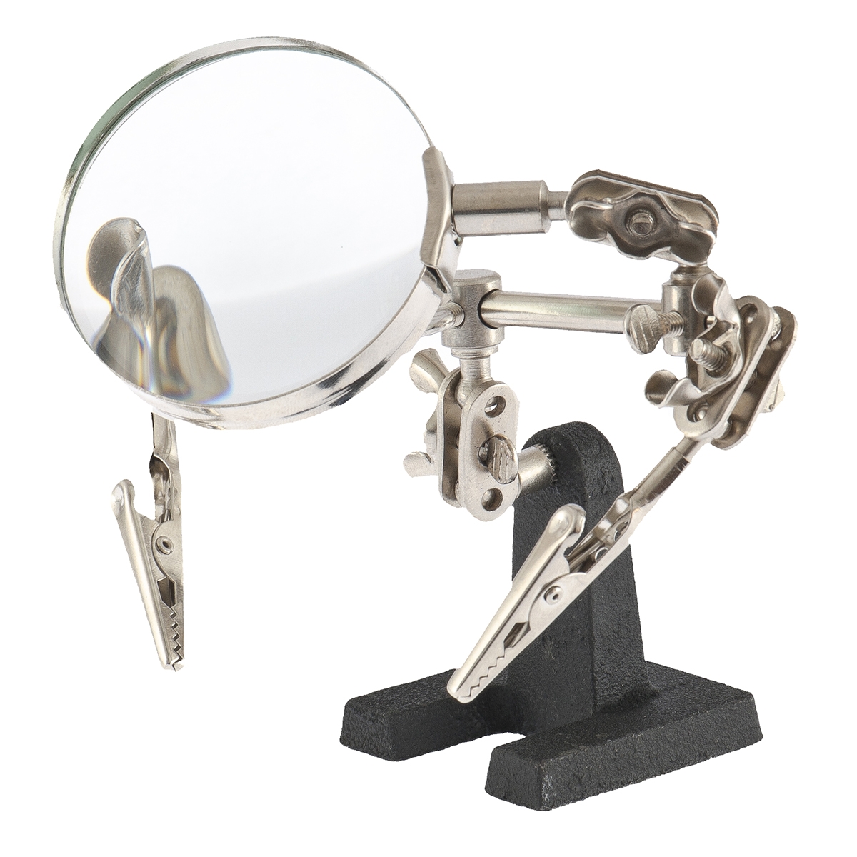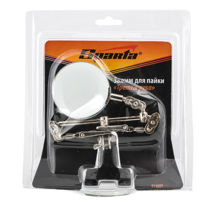 Зажим для пайки с лупой "Третья рука" SPARTA 914605 широко применяется при выполнении паяльных работ. Удобен при электромонтажных операциях с мелкими деталями. Конструкция данного изделия представляет собой сочетание лупы и двух зажимов, расположенных на шарнирах для возможности установки в любом удобном для мастера положении.Держатель для паяльника: нетПодсветка: нетКоличество зажимов: 2Диаметр основной линзы: 62ммКоличество линз: 1Кратность увеличения основной линзы: 4Материал корпуса: углеродистая стальМатериал линзы: стеклоРазмер упаковки:Длина, мм: 190Ширина, мм: 65Высота, мм: 180