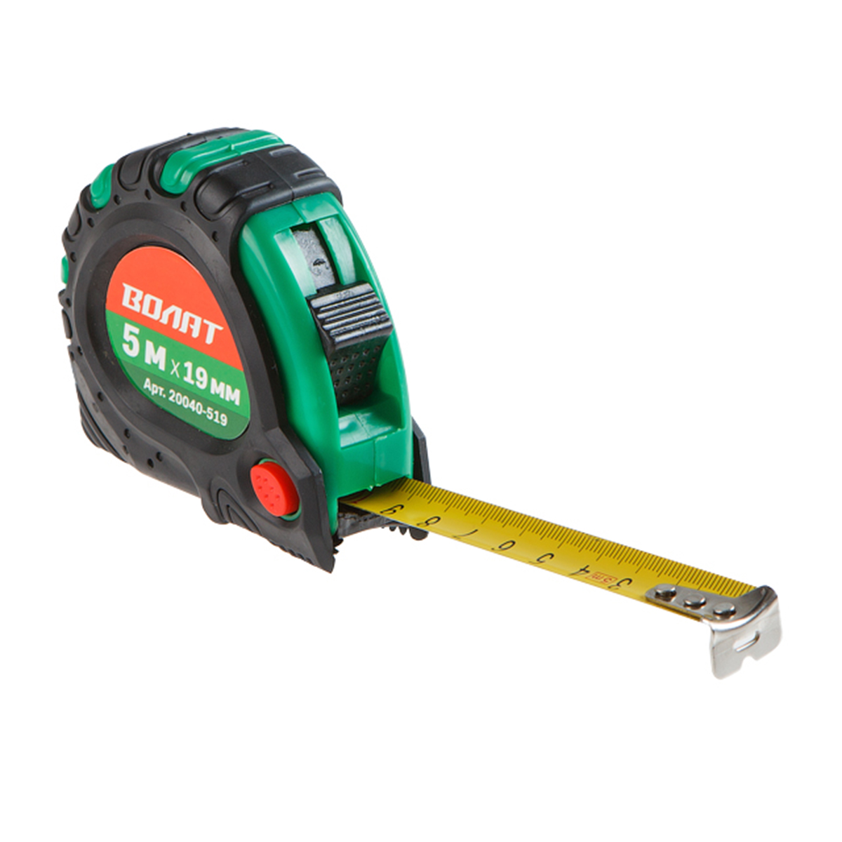 Рулетка применяется при выполнении измерительных или разметочных работ. Корпус рулетки изготовлен из ABS-пластика и снабжен обрезиненным чехлом. Эргономичное устройство рулетки включает три независимых механизма фиксирования ленты, что делает работу с рулеткой наиболее удобной.