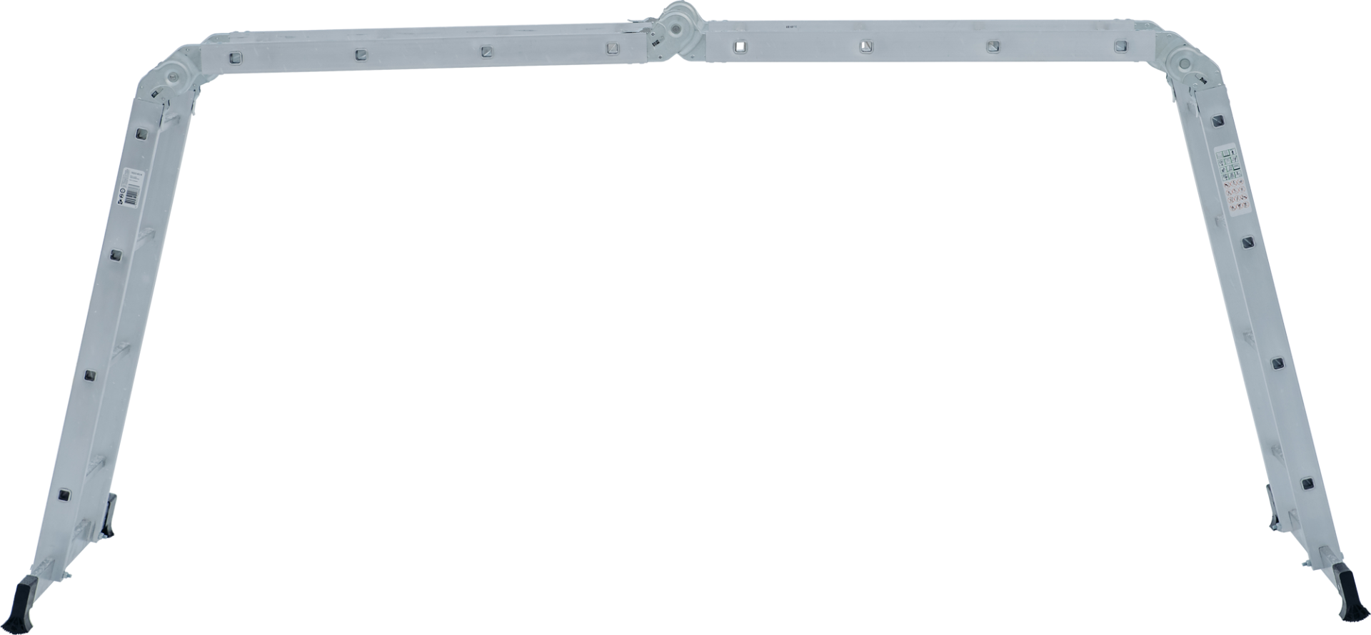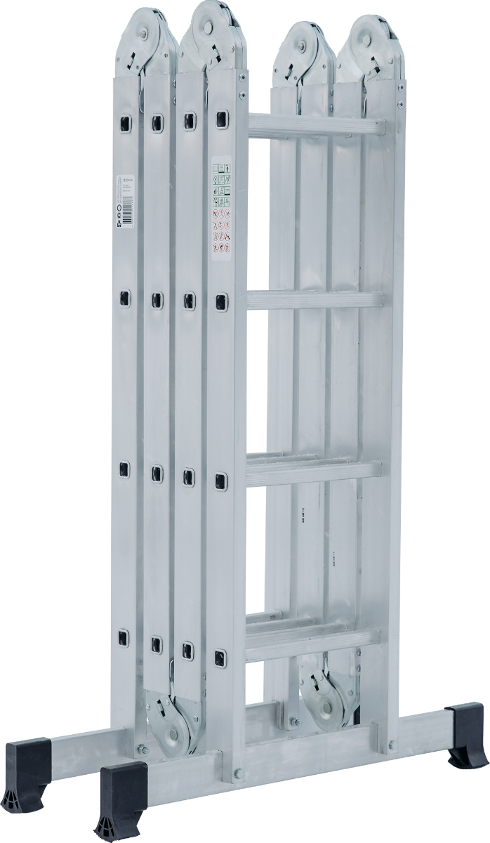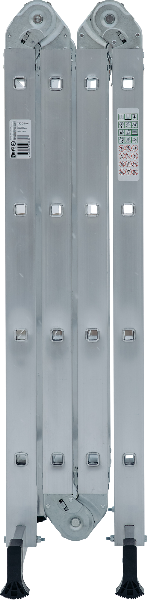 Технические преимущества:прочность и надёжность при небольшом весе изделияступени с рифлением для безопасного подъёма и спускастойки и ступени изготовлены из прессованного алюминиевого профилястойки с дополнительным усилием в наиболее нагруженных местах для повышения жёсткостимногократная развальцовка в соединении ступеней со стойками обеспечивает высокую прочность и долговечностьшарнирные замки регулируются одной рукойнадёжная автоматическая фиксацияширокие поперечные траверсы обеспечивают высокую устойчивость при работе во всех положенияхбашмаки траверсы препятствуют скольжению, они надёжно закреплены с помощью заклёпокХарактеристикиМатериал: алюминийКоличество ступеней: 4x4Общая длина (м): 4,3Рабочая высота (м): 6Высота одной секции (м): 1,12Высота в форме стремянки (м): 2,09Высота трех секций (м): 3,18Рабочая высота в форме стремянки (м): 3,79Высота в форме платформы (м): 1,17Рабочая высота в форме платформы (м): 3,17Размер профиля (мм): 63,6х24Грузоподъемность (кг): 120Вес (кг): 11,7