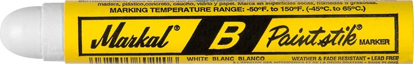 Самый универсальный и самый экономичный маркер на основе краски гаммы MarkalR, первый из созданных продуктов подобного типа, стержень BRPaintstikR сочетает стойкость краски иудобство пользования мелка. Благодаря входящей в состав настоящей краске, отличается непревзойденной эффективностью при маркировке замасленных, обледенелых, влажных, сухих или холодных поверхностей, создавая надписи, устойчивые к УФ-лучам и атмосферным воздействиям. Стержень с краской предназначен для шероховатых, ржавых, гладких или загрязненных поверхностей. ОСОБЕННОСТИ И ПРЕИМУЩЕСТВА o Настоящая краска обеспечивает отчетливую и стойкую маркировку oМаркировка отличного качества на шероховатых, ржавых или загрязненных поверхностях o Использование стержня с твердой краской не требуетзамены наконечника, затачивания или подкачки краски, что улучшает производительность o Долговременная маркировка благодаря краске, устойчивой к УФ-лучам и атмосферным воздействиям o Температура окружающей среды при эксплуатации: -46:+66 °C (-50:+150 °F