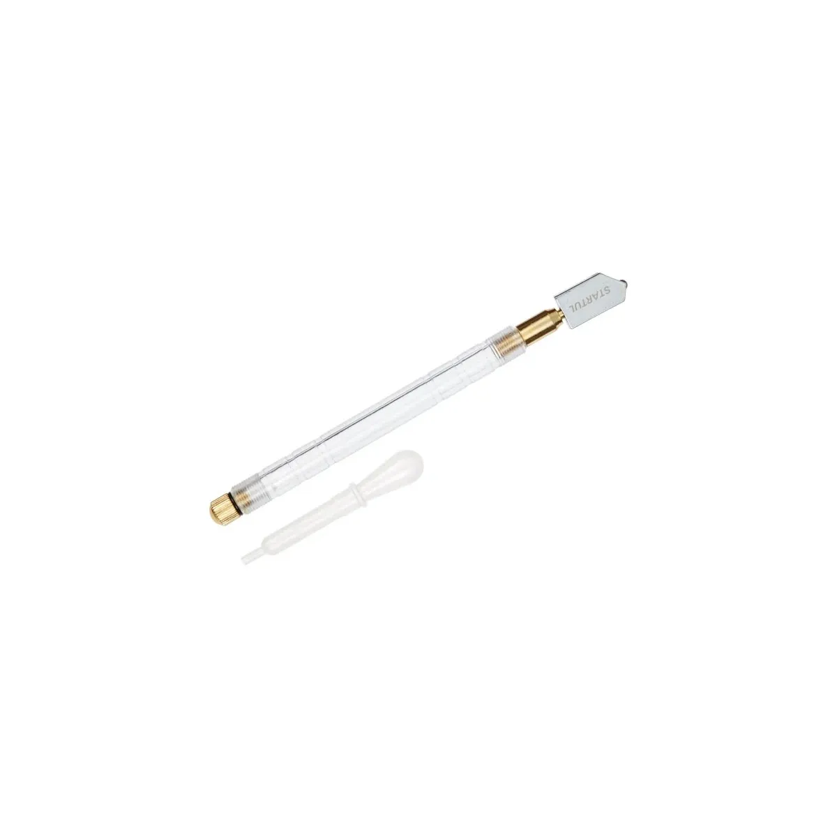 Стеклорез масляный предназначен для разрезания стекла толщиной от 2 до 10 мм. Стеклорез оснащен дозирующей колбой, заправляемой керосином, соляркой или веретенным маслом. В комплект входит пипетка, при помощи которой осуществляется заправка стеклореза. Масло подается всякий раз при нажатии на режущую насадку.