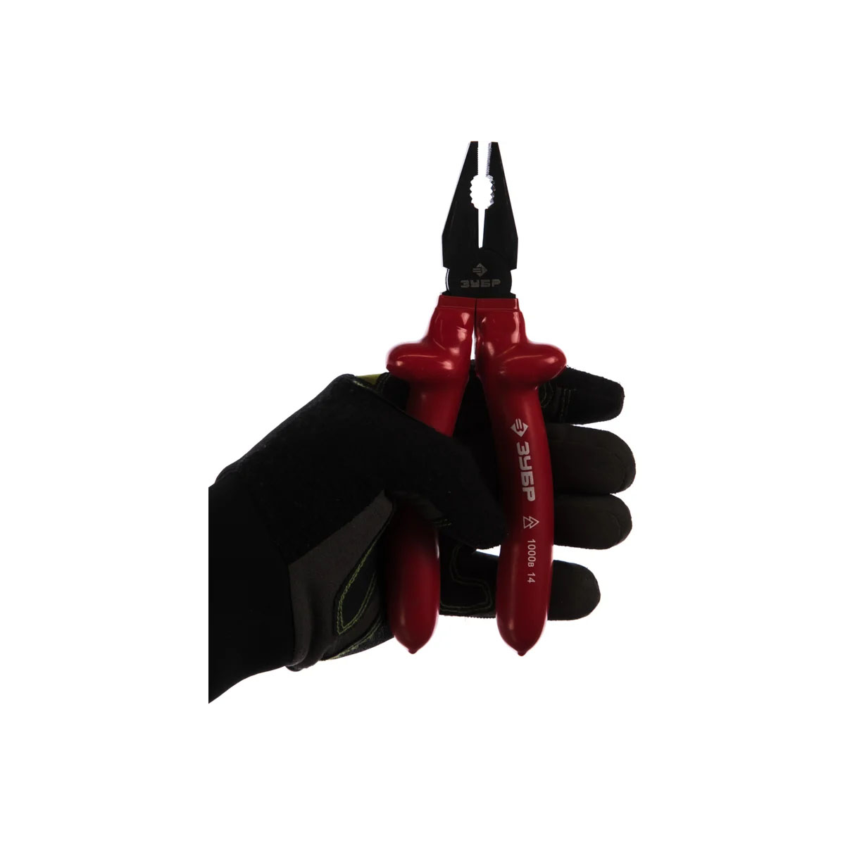 Плоскогубцы "ЭЛЕКТРИК" комбинированные, диэлектрические, высоковольтные до ~1000В, маслобензостойкая рукоятка, 160мм, ЗУБР МастерПредназначены для выполнения электромонтажных работ под напряжением до 1000 В.Высоковольтный инструмент для работы под напряжением до 1000 ВИзготовлены из высококачественной инструментальной сталиПоверхность губок и режущие кромки дополнительно закалены токами высокой частоты для увеличения ресурсаОсобостойкое специальное хромоникелевое покрытие Н12Х1Пластмассовые эргономичные диэлектрические рукоятки имеют защитные выступы, препятствующие контакту руки с объектом, находящимся под напряжением