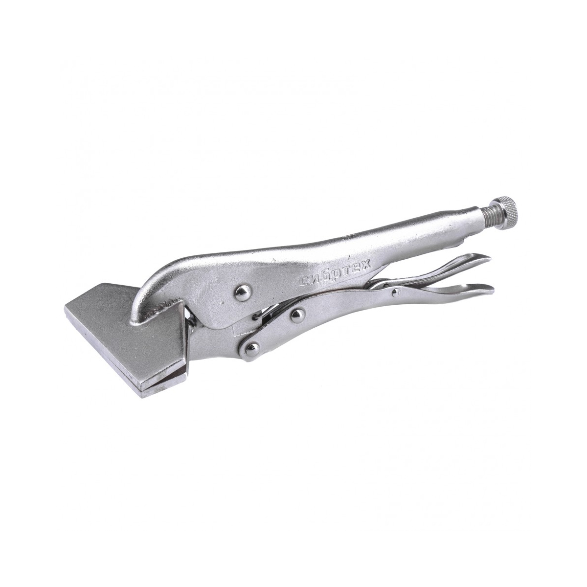 Ручной зажим с фиксатором предназначен для удержания и временной фиксации разнообразных по форме предметов. Для регулировки ширины захвата на корпусе установлен винт. Защитное покрытие инструмента - никель.Длина: 245 ммМатериал: сталь