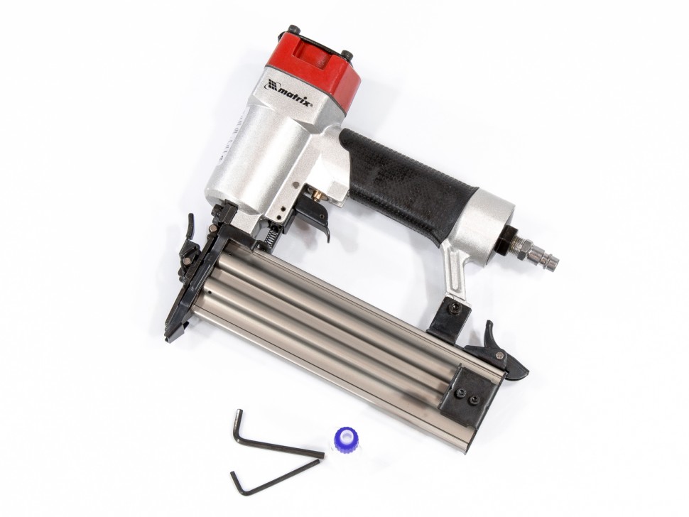 Пневматический гвоздезабивочный пистолет с емкостью магазина на 100 паркетных гвоздей размера 18 предназначен для быстрого и надежного крепления паркетной доски, фанеры, ДВП, гипсокартона, кожи, ткани и бумаги к деревянным поверхностям.Диапазон рабочего давления – 65–110 фунтов на кв. дюйм (0,55–0,76 МПа).Бренд "MATRIX" производит ручной инструмент с 2003 года. В ассортименте торговой марки "MATRIX" - слесарный, столярный, режущий, строительно-отделочный, измерительный инструмент и крепежные изделия. Несколько последних лет фирма также производит и электроинструменты. Инструменты бренда MATRIX крайне надёжны, обладают высочайшим качеством и легки в применении. При этом компания MATRIX не забывает снабжать свои модели одним из самых прогрессивных дизайнов среди аналогов фирм-конкурентов.