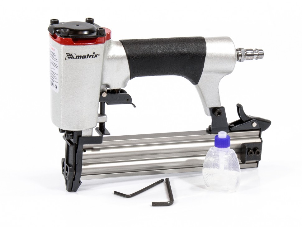 Пневматический гвоздезабивочный пистолет с емкостью магазина на 100 паркетных гвоздей размера 18 предназначен для быстрого и надежного крепления паркетной доски, фанеры, ДВП, гипсокартона, кожи, ткани и бумаги к деревянным поверхностям.Диапазон рабочего давления – 65–110 фунтов на кв. дюйм (0,55–0,76 МПа).Бренд "MATRIX" производит ручной инструмент с 2003 года. В ассортименте торговой марки "MATRIX" - слесарный, столярный, режущий, строительно-отделочный, измерительный инструмент и крепежные изделия. Несколько последних лет фирма также производит и электроинструменты. Инструменты бренда MATRIX крайне надёжны, обладают высочайшим качеством и легки в применении. При этом компания MATRIX не забывает снабжать свои модели одним из самых прогрессивных дизайнов среди аналогов фирм-конкурентов.