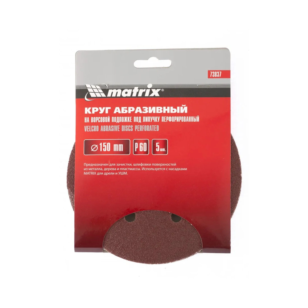 Абразивный круг на ворсовой подложке под "липучку" Matrix Р60 используется для сухого чернового шлифования металла, дерева, пластика и других поверхностей. Круг устанавливается на эксцентриковые (орбитальные) шлифовальные машинки с отводом воздуха или на дрель с помощью опорной насадки Matrix. Крупнозернистый абразив Р60 позволяет избавиться от заусенцев, подходит для зачистки старого покрытия (краски/лака), удаления ржавчины, снятия слоя материала.Характеристики:Диаметр: 150 ммЗернистость: P60