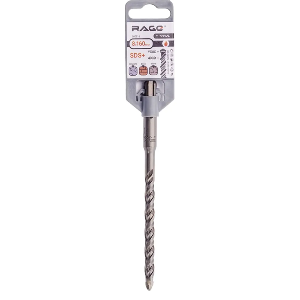 Бур RAGE by VIRA SDS-plus 8x110 мм. Бур RAGE by VIRA SDS-plus 8x160 мм. Серия буров RAGE by VIRA Бур для перфоратора является сменным элементом для перфораторов и отбойных молотков, имеющих тип патрона SDS+. Бур оптимизирован для ударного сверления отверстий в бетоне, камне, кирпиче. Эргономичная скользящая спираль способствует быстрому выводу шлама. Тело бура изготовлено из 40Cr, наконечник из YG8.Технические характеристики бура sds-plus RAGE 560816Диаметр: 8 ммТип хвостовика: SDS-plusОбщая длина: 160 ммРабочая длина: 110 ммКоличество граней: 2