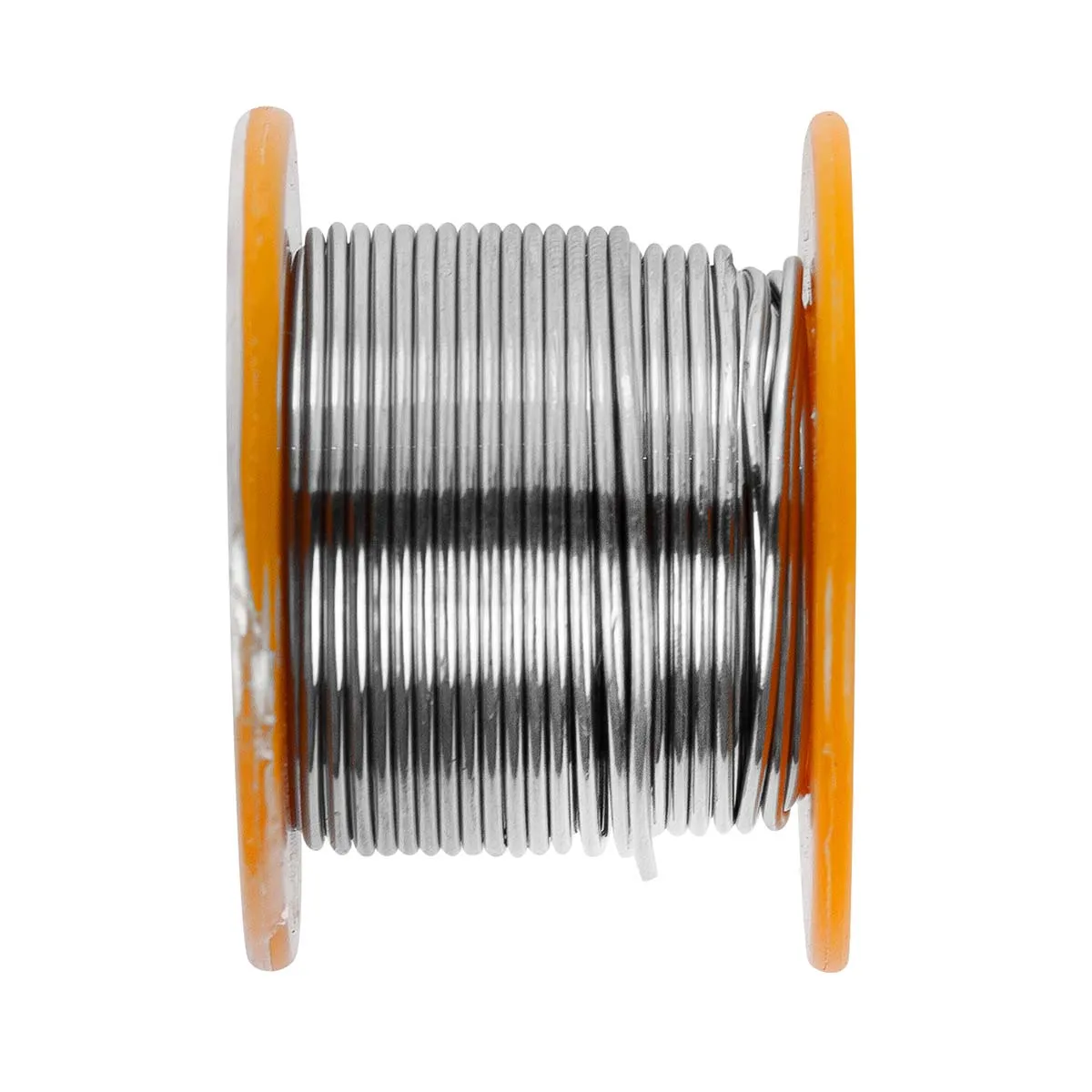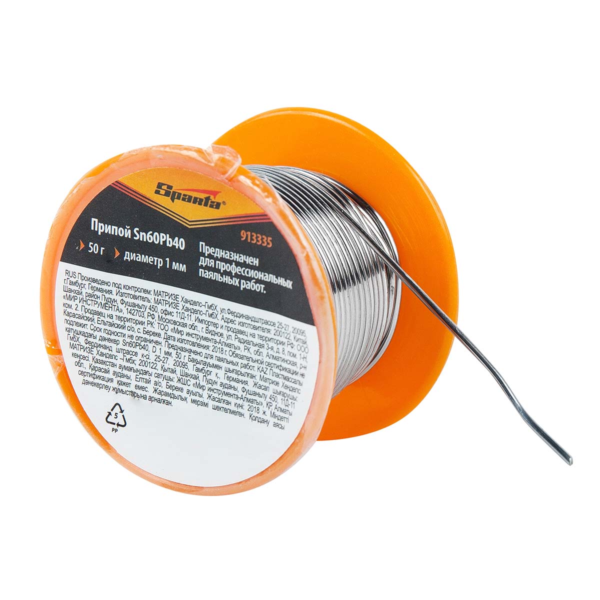 Оловянно-свинцовый сплав для пайки (соединения в расплавленном состоянии металлических деталей). Рекомендуется применять для пайки тонких проводов в связи с высоким содержанием олова, снижающим температуру плавления припоя. Для удобства использования проволока припоя намотана на пластмассовую катушку.