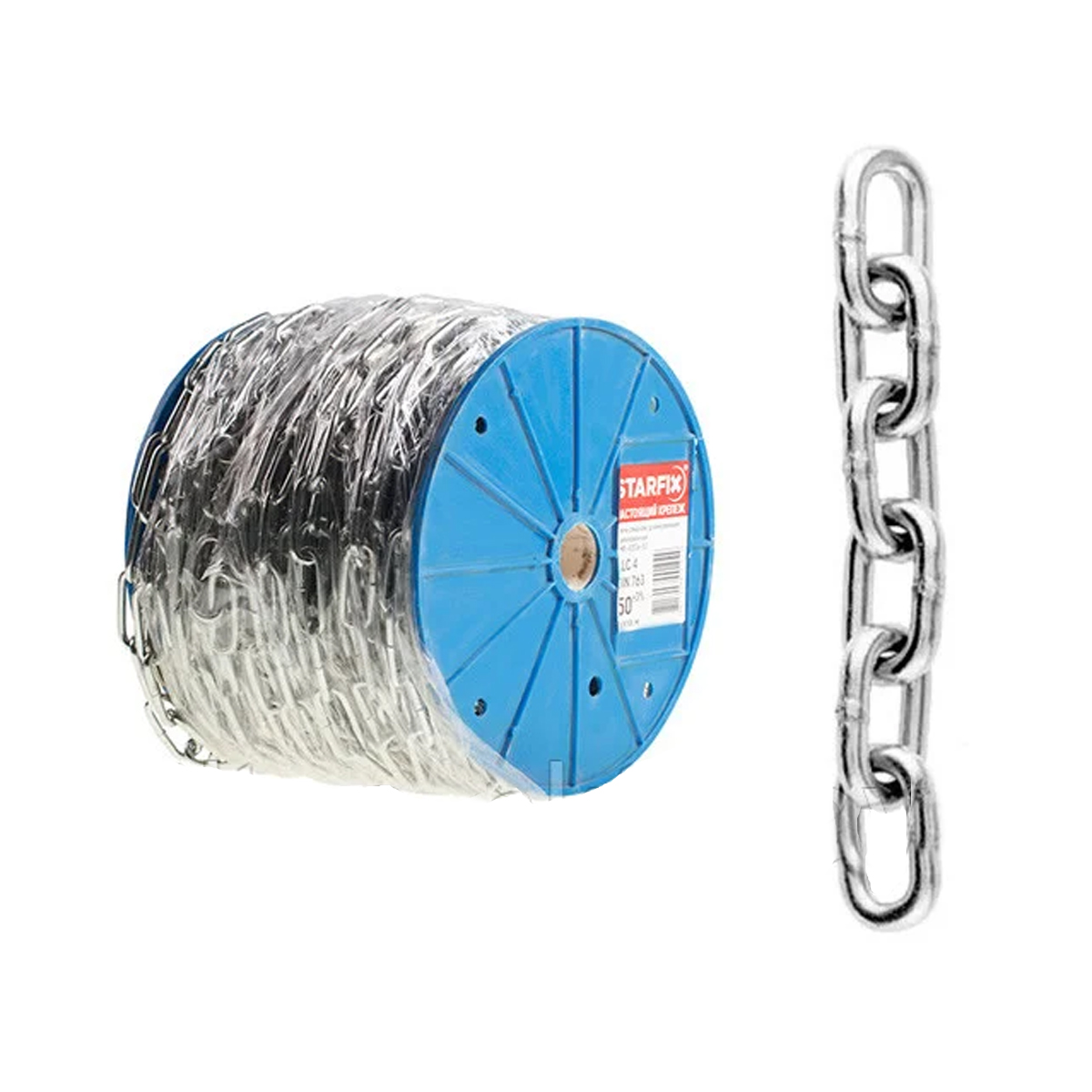Внимание! Цена указана за метр.Цепь сварная короткозвенная, оцинкованная:Внутренняя длина звена: 24 ммВнешняя ширина звена: 13,7 ммРабочая нагрузка: 1,0 kH.Разрушающая нагрузка: 6,0 kH.Приблизительный вес: 0,30кг/мЦепь стальная общего назначения, оцинкованная. Применяется в качестве растяжки. Не выносит ударных нагрузок.Производитель: STARFIX