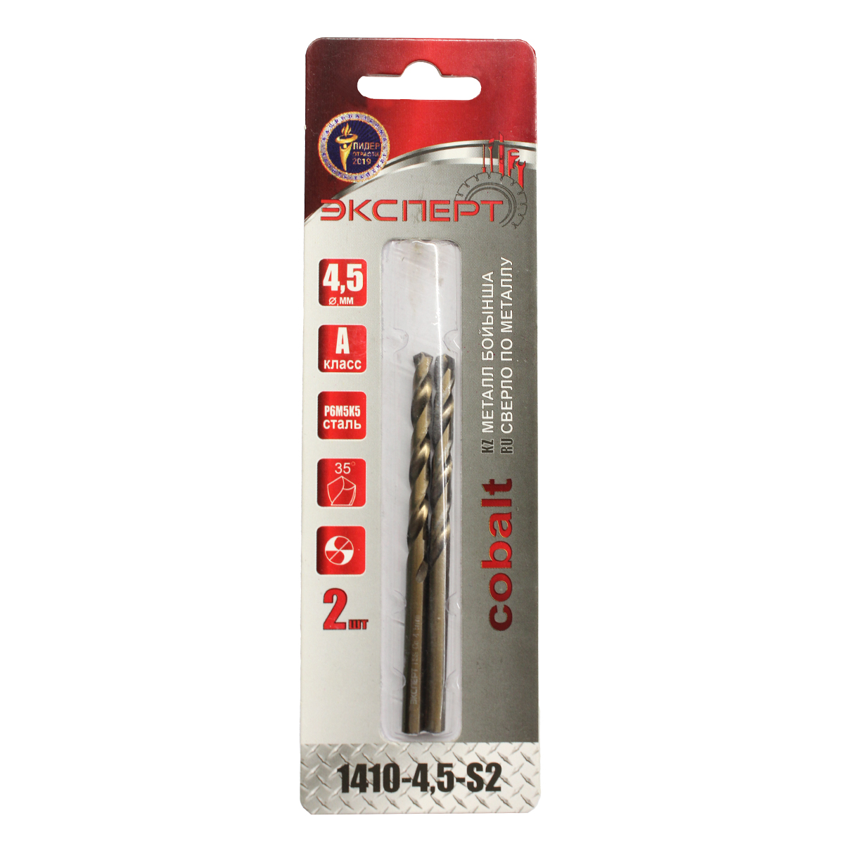 —Сверло по металлу "ЭКСПЕРТ" КОБАЛЬТ 1410-4,5-S2 цилиндрический хвостовик, диаметр 4,5мм(2шт/уп)