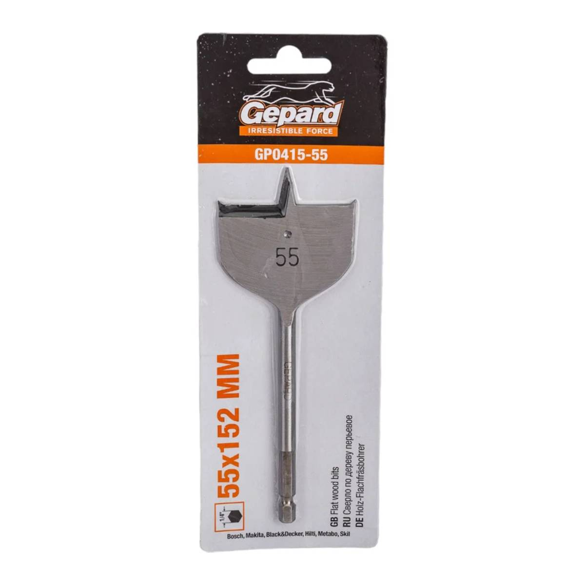 Сверло по дереву перьевое изготовлено из высококачественной углеродистой инструментальной стали для сверления глухих и сквозных отверстий в мягкой и средней твердости древесине и легких строительных материалах, таких как гипсокартон. Надежно фиксируется в кулачковом патроне без проскальзывания. Высокая скорость сверленияЗаточка: сверло с боковыми подрезателями (зубцами). Вертикальная заточка центрирующего острия, а также заточка углубления кромки (плечевое заострение).Характеристики:Диаметр: 55 ммДлина: 152 ммДиаметр хвостовика: 6.35 ммТип хвостовика: шестигранный (1/4HEX - E)Материал обработки: дерево