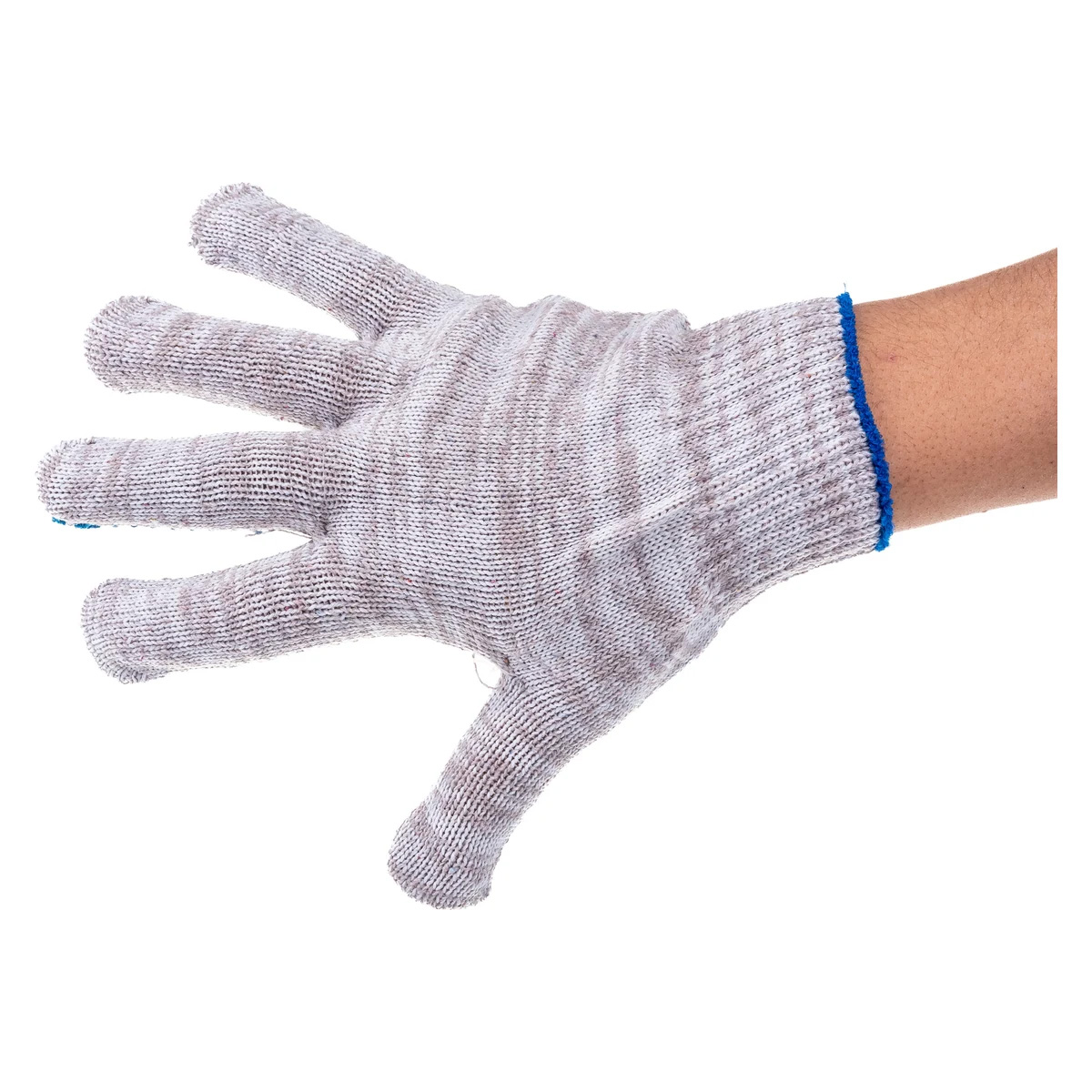 Материал «Серый меланж»: Смесовая нить (хлопок с добавлением полиэфира) делает перчатки износостойкими и практичными — на сером фоне меньше заметны загрязнения.