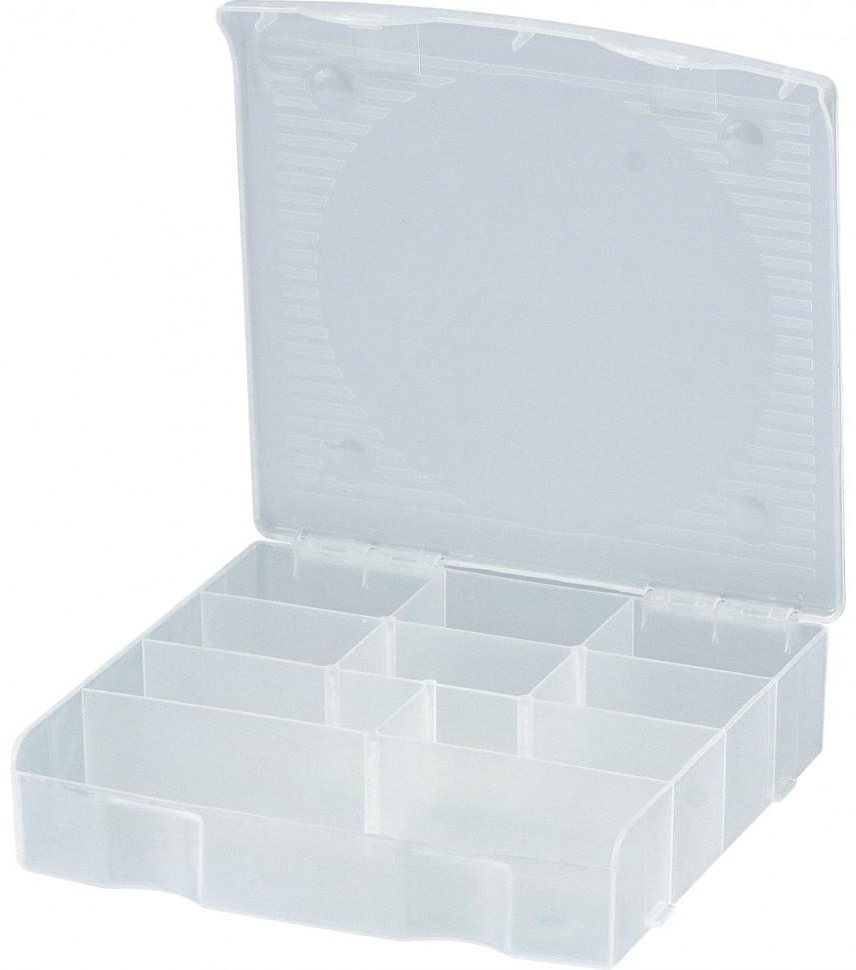 Корпус выполнен из прочного полипропилена, который защищает содержимое от пыли и влаги. Внутреннее пространство разделено на 9 отдельных секций, что позволяет поддерживать порядок и быстро находить нужные элементы. Прозрачный матовый пластик дает возможность видеть содержимое без открытия крышки. Компактный размер позволяет размещать органайзер в ящиках, шкафах, системах хранения или на рабочем столе.
