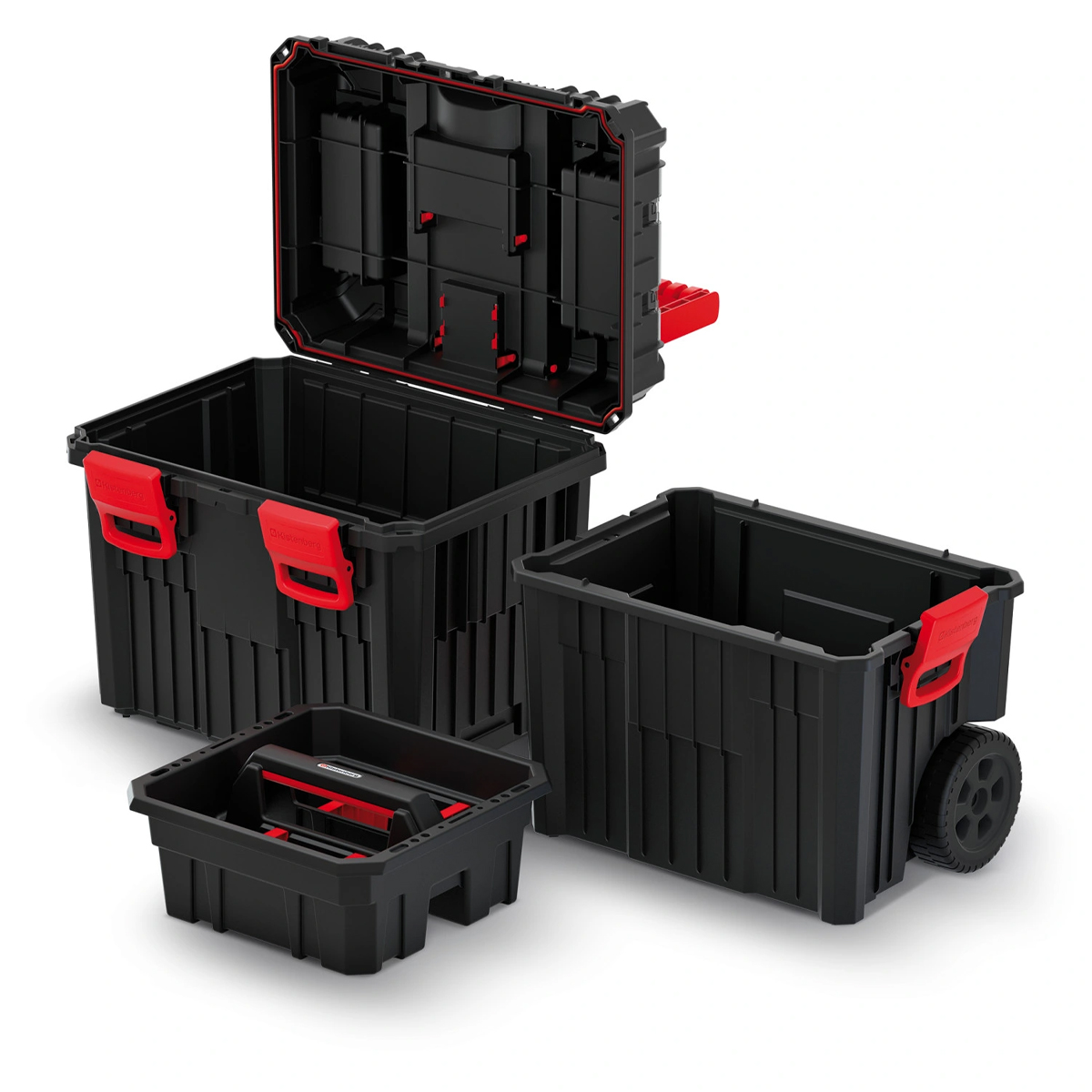 Большие колеса для удобной транспортировки ящика. Модульный корпус из армированной полимерной смеси. Усиленная конструкция стены. Прочная складная ручка из ABS. Прочные застежки из АБС-пластика. Прочная прокладка обеспечивает пыле- и водонепроницаемость изделия. Функциональный лоток внутри. Прозрачные органайзеры с крышками из поликарбоната. Перегородки и корзины в органайзере. Возможность демонтажа для транспортировки. Отлично подойдёт как для личного пользования, так и на подарок.Характеристики:Размер: 450 х 350 х 640 мм.Вес: 5,2 кг