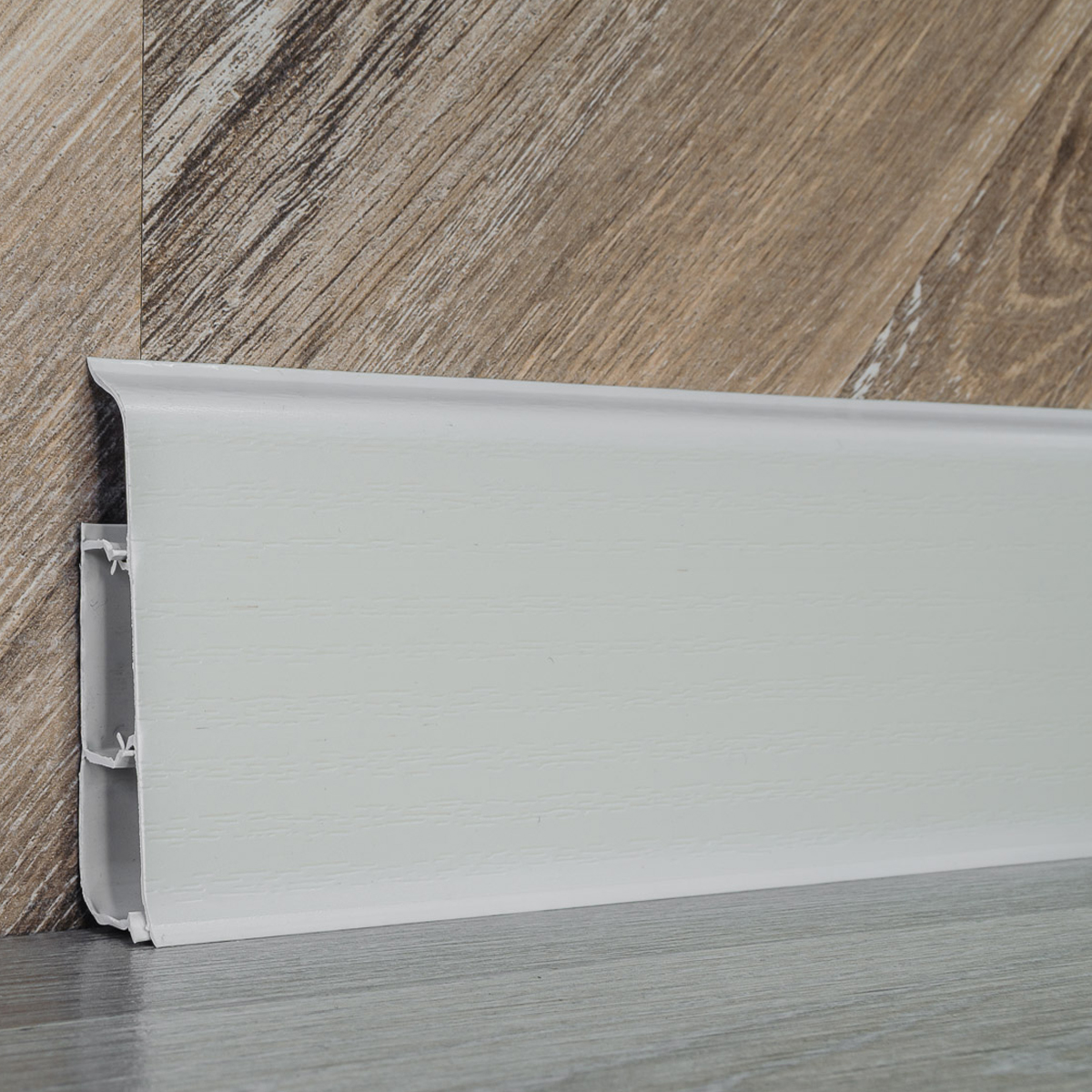 Плинтус скроет шов между стеной и полом, защитное напольное покрытие от пыли и влаги и придаст интерьеру законченность. Служит для прокладки кабелей вдоль стен. Трехслойное нанесение создаёт реалистичную текстуру дерева. Защитное покрытие многократно увеличивает срок службы.Характеристики:Длина: 2,2 м.Высота: 85 мм.Ширина: 21 мм.Тип плинтуса: ПВХКрепление: Дюбель / саморез