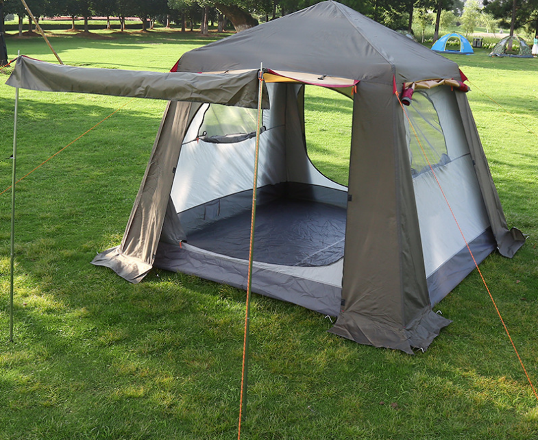 Данная модель может служить как палатка, так и тент-шатер для застолья или просто комфортного отдыха. Выдвижной тент на 2 м. позволяет создать дополнительную площадь на входе. Москитная сетка на двух окнах, а так же на двух стенах позволит наслаждаться природой не сокращая обзорность, и конечно, защитит от надоедливых москитов. Прочный каркас палатки изготовлен из стали, поэтому вся конструкция устойчива к ветру. Все части каркаса надежно фиксируются между собой, и дополнительно могут крепиться колышками к почве. Вес: 10,7 кгВодонепроницаемость: 3000 мм водяного столба.