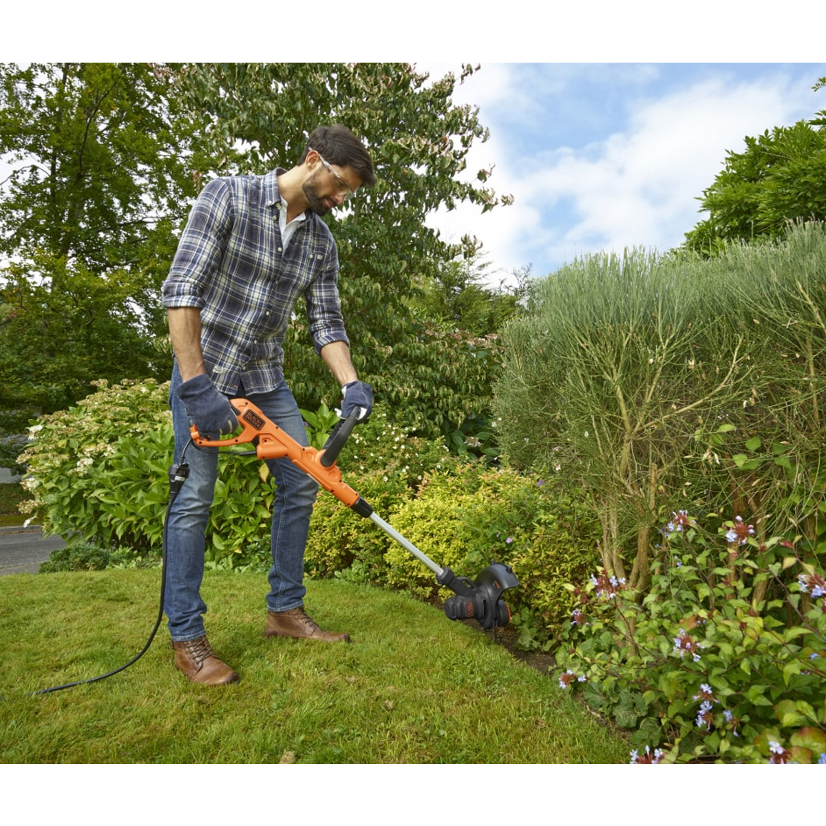 Электрический триммер Black&Decker BESTE625 отличается системой повышения крутящего момента без потери частоты вращения, что позволяет скашивать не только свежую, но и жесткую траву. Для экономии времени и сил подача лески производится нажатием на кнопку Power Command, расположенную под большим пальцем. Для работы операторов любого роста данная модель оснащена телескопической штангой. Металлическая дуга защищает леску от чрезмерного износа при кошении вблизи ограждений.Преимущества:Низкий уровень шума - для комфортной работы;Мощный двигатель - для высокой эффективности;Удобная рукоятка - для надежного хвата;Воздушное охлаждение - для стабильной работы Black&Decker BESTE625;Дополнительная рукоятка - для полного контроля;Небольшой вес - для удобства использования.Характеристики:Мощность: 450 ВтЧастота вращения шпинделя: 7300 об/минТолщина лески: 1,3 ммШирина скашивания: 25 смНапряжение: 220 ВУровень звукового давления: 80 дБВес: 3,2 кг