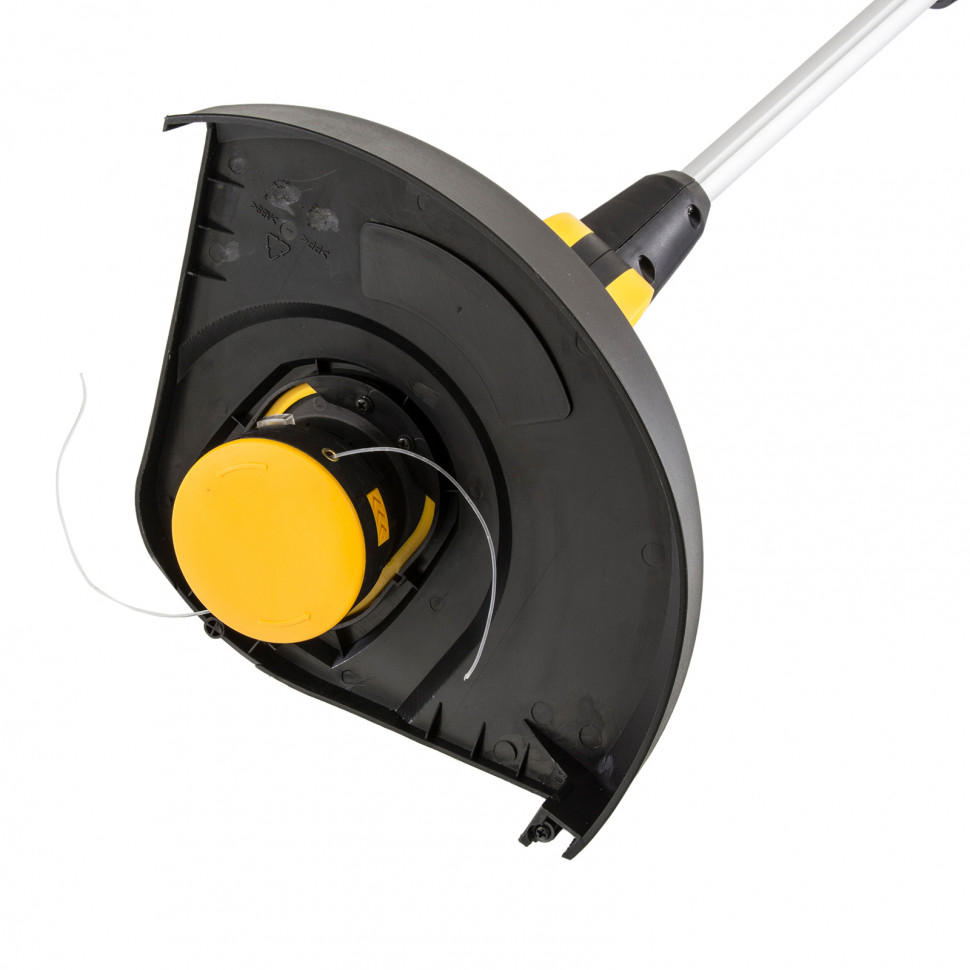Электрический триммер Denzel предназначен для скашивания травы в садах и на дачных участках.Эффективно работает в труднодоступных местах: вдоль кромок дорожек, стен строений, а также вокруг деревьев.Высокую частоту вращения режущей головки обеспечивает электродвигатель мощностью 650 Вт.Пользователи любого роста могут настроить триммер "под себя" с помощью раздвижной телескопической рукоятки с диапазоном регулировки до 215 мм.Регулировка угла наклона штанги относительно мотора обеспечат максимальный комфорт при работе.При работе с триммером рекомендуется применять леску диаметром 1,3 мм.За один проход ширина скашивания леской составляет 33 см.Триммер оснащен катушкой-автоматом, удлинение лески происходит в момент запуска триммера.Мощность: 650 ВтНапряжение: 220 ВМаксимальный диаметр лески: 1.3 ммКрепление шпули: M6
