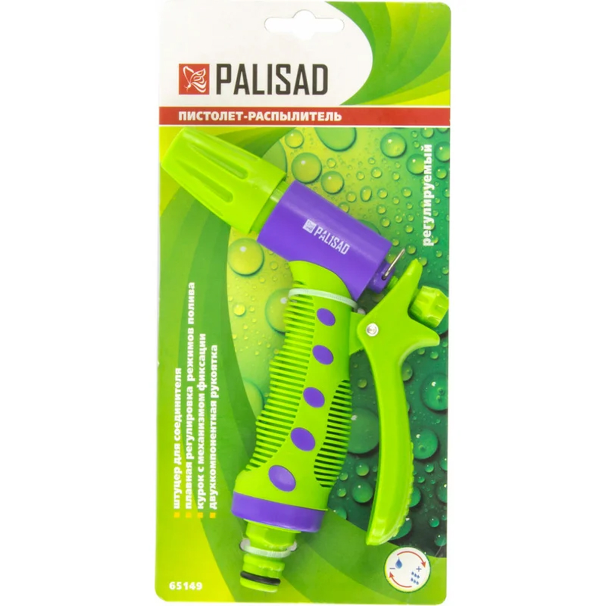 Регулируемый пистолет-распылитель Palisad 65149, с эргономичной рукояткой, легко справляется с поливом больших участков за счет подачи длиной струи. С его помощью можно орошать растения и чистить садовый инструмент, дорожки, тротуары. Устройство поможет поддерживать жизнедеятельность растений, поэтому пригодится садоводам и работникам коммунальных служб для осуществления обслуживания парков, газона, сада и огорода и т.д. Универсальный быстросъемный коннектор позволяет легко подключать пистолет к любым поливочным системам ТМ Palisad.Технические характеристики PALISAD 65149 :Установка: на шланг/источникКоннектор: нетТип соединителя: StandartКоличество режимов распыления: 3Материал рукояти: обрезиненный пластикМатериал корпуса: ABS-пластикФиксатор: естьВес нетто: 0.17 кгГабариты без упаковки: 130 х 155 х 40 мм