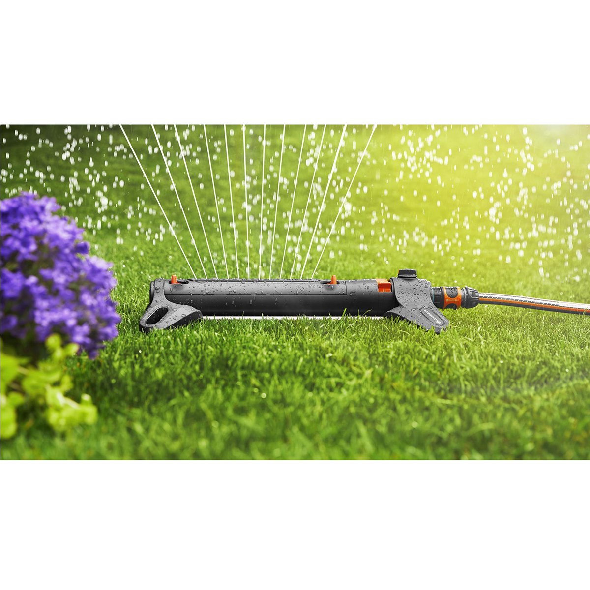 Эффективный и равномерный поливФорсунки осциллирующего дождевателя AquaZoom S обеспечивают равномерный и высокоточный полив газонов площадью от 9 до 150 м². Такой способ полива также предотвращает образование луж.Проще не бываетСобрать осциллирующий дождеватель без инструментов и подсоединить шланг можно всего в несколько приемов. С помощью ползунка выберите дальность (3–15 метров), а также тип полива. Наряду с поливом одновременно двух сторон также можно настроить полив только с одной стороны (слева или справа). Ширину полива можно легко установить в диапазоне от 3 до 10 метров. Точная регулировка позволяет контролировать расход воды.И в дождливую, и в ясную погодуПрочный материал осциллирующего дождевателя AquaZoom S защищает его от замерзания и воздействия ультрафиолетового излучения.Идеальная чистотаСоединение подачи воды AquaZoom S оснащено нержавеющим металлическим фильтром, предотвращающим попадание частиц грязи в дождеватель. Его можно легко снять и очистить под струей воды. Поскольку распылительные форсунки изготовлены из мягкой пластмассы, вы можете легко очистить их, просто проведя по ним пальцем.Исключительная устойчивостьСверхширокие опоры и металлические компоненты обеспечивают высокую устойчивость дождевателя AquaZoom S на траве.Высочайшее качество продукцииПроизведенная в Германии продукция GARDENA – это высокая производительность, надежность и инновации.Гарантия 5 лет обеспечена высоким качествомПлощадь: 150 м² Тип соединителя: Standart Дальность: 3-15 м. Ширина распыления: 3-10 м.Форма площади полива: прямоугольник.Максимальное давление: 6 бар.