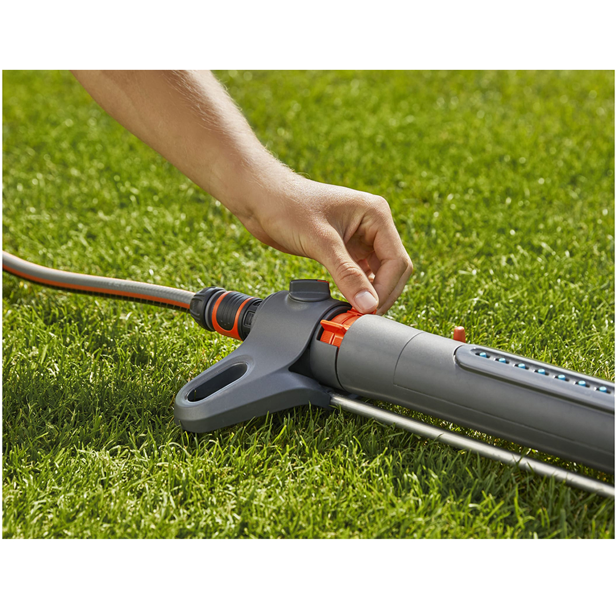 Эффективный и равномерный поливФорсунки осциллирующего дождевателя AquaZoom M обеспечивают равномерный и высокоточный полив газонов площадью от 9 до 250 м². Такой способ полива также предотвращает образование луж.Проще не бываетСобрать осциллирующий дождеватель без инструментов и подсоединить шланг можно всего в несколько приемов. С помощью ползунка выберите дальность (3–18 метров), а также тип полива. Наряду с поливом одновременно двух сторон также можно настроить полив только с одной стороны (слева или справа). Ширину полива можно легко установить в диапазоне от 3 до 14 метров. Точная регулировка позволяет контролировать расход воды.И в дождливую, и в ясную погодуПрочный материал осциллирующего дождевателя AquaZoom M защищает его от замерзания и воздействия ультрафиолетового излучения.Идеальная чистотаСоединение подачи воды AquaZoom M оснащено нержавеющим металлическим фильтром, предотвращающим попадание частиц грязи в дождеватель. Его можно легко снять и очистить под струей воды. Поскольку распылительные форсунки изготовлены из мягкой пластмассы, вы можете легко очистить их, просто проведя по ним пальцем.Исключительная устойчивостьСверхширокие опоры и металлические компоненты обеспечивают высокую устойчивость дождевателя AquaZoom M на траве.Высочайшее качество продукцииПроизведенная в Германии продукция GARDENA – это высокая производительность, надежность и инновации.Гарантия 5 лет обеспечена высоким качествомПлощадь: 250 м² Тип соединителя: Standart Дальность: 3-18 м. Ширина распыления: 3-14 м.Форма площади полива: прямоугольник.Давление: 2-4 бар.