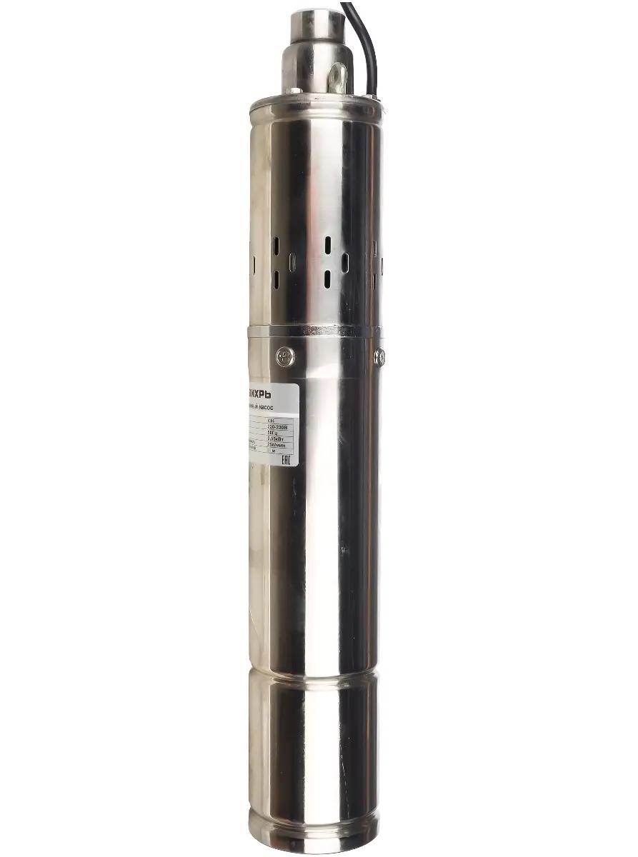Скважинный насос ВИХРЬ СН-90В предназначен для подачи воды с большой глубины: из шахтных колодцев, резервуаров и открытых водоёмов для полива садов и огородов. Корпус насоса из нержавеющей стали, стойкий к коррозии и улучшает теплообмен между двигателем и водой, т.е. происходит эффективный процесс охлаждения двигателя.Модель СН-90В относится к группе погружных насосов. Как уже понятно из названия, в отличие от насосов поверхностного типа они размещены в воде, которую необходимо перекачивать. Обычно погружные насосы применяют в тех случаях, когда источник воды находится на большой глубине (больше девяти метров), так как поверхностные насосы в таких случаях не работают.По конструкции насос СН-90В относится к винтовому типу. Иногда винтовые нососы называют червячными или шнековыми.Системы защиты:тепловая защита предохраняет устройство от выхода из строя при перегрузках или отсутствии воды в источнике.класс защиты IPX8, означает, что насос может работать полностью погруженным в воду на глубину до 60 метров.Не допускается перекачивание загрязненных, щелочных, кислотных жидкостей и растворов. Вода не должна содержать песка и других механических примесей. Температура перекачиваемой воды должна быть от +1 до +35°С.Технические характеристики:Производитель: ВихрьТип: ПогружнойМощность: 550 ВтВысота напора: 90 мГлубина погружения: 35 мДиаметр: 90 ммМакс. производительность: 1500 л/чМакс. температура воды: 35°CДиаметр выходного отверстия: 1 дюймМатериал: НержавейкаКачество воды: ЧистаяКласс защиты: IPX8Длина кабеля: 20 мПитание: От электросетиНапряжение сети: 220 ВЧастота: 50 ГцСтрана бренда: РоссияСтрана производства: КитайРазмеры в коробке: 17 × 12 × 54 смВес без упаковки: 9.2 кгВес в упаковке: 9.8 кг