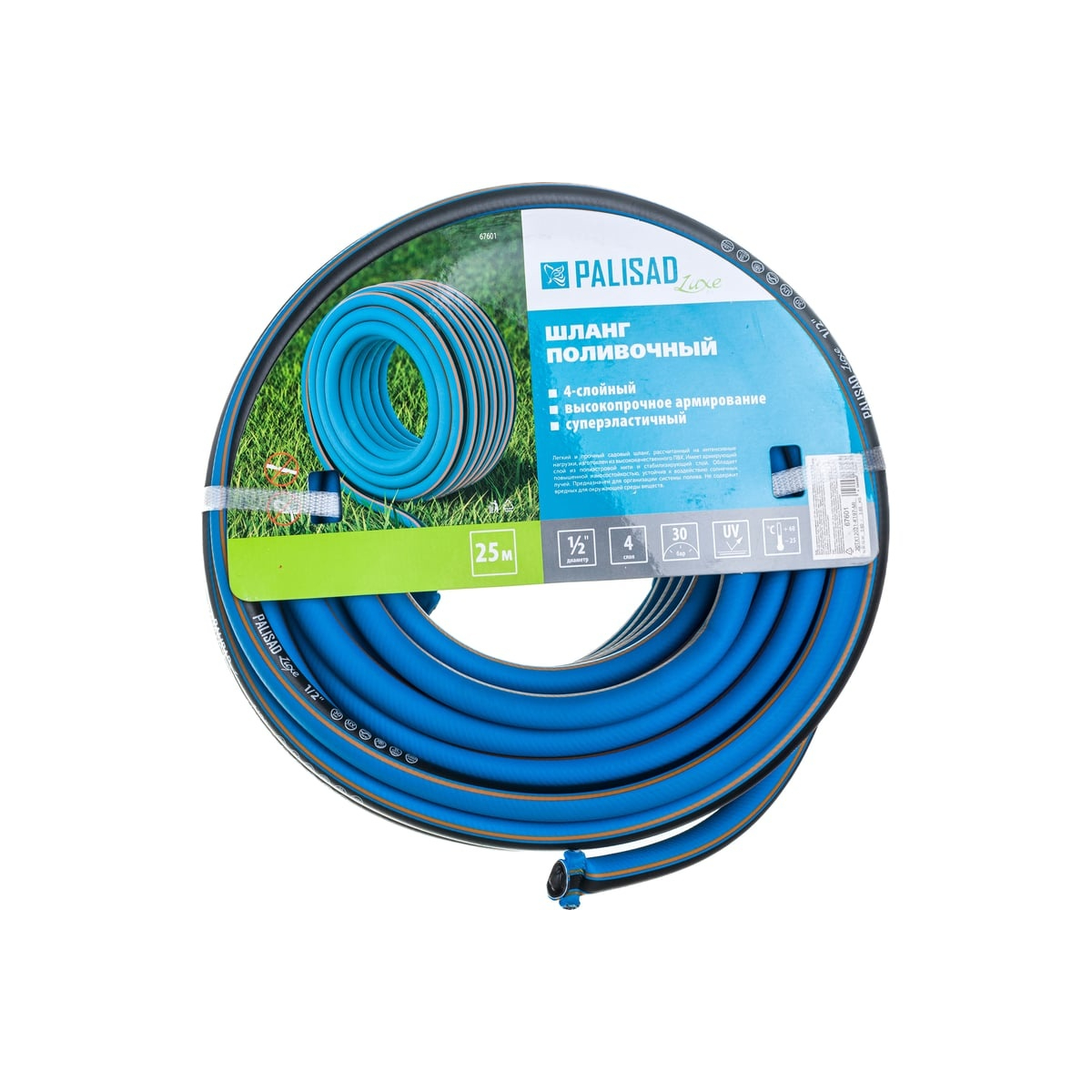 Шланг предназначен для орошения почвы на садовых и парковых участках, перелива жидкости из одной емкости в другую. Обладает тремя слоями и сетчатым армированием, что позволяет шлангу не перекручиваться и облегчает его использование.Технические характеристики:Толщина, мм: 2.3Материал: ПВХMax давление, бар: 30Допустимый диапазон температур, °С: от -25 до +60Длина, м: 25Min температура эксплуатации, °С: -25Диаметр, дюйм: 1/2Тип: армированныеВес: 3,7 кг.
