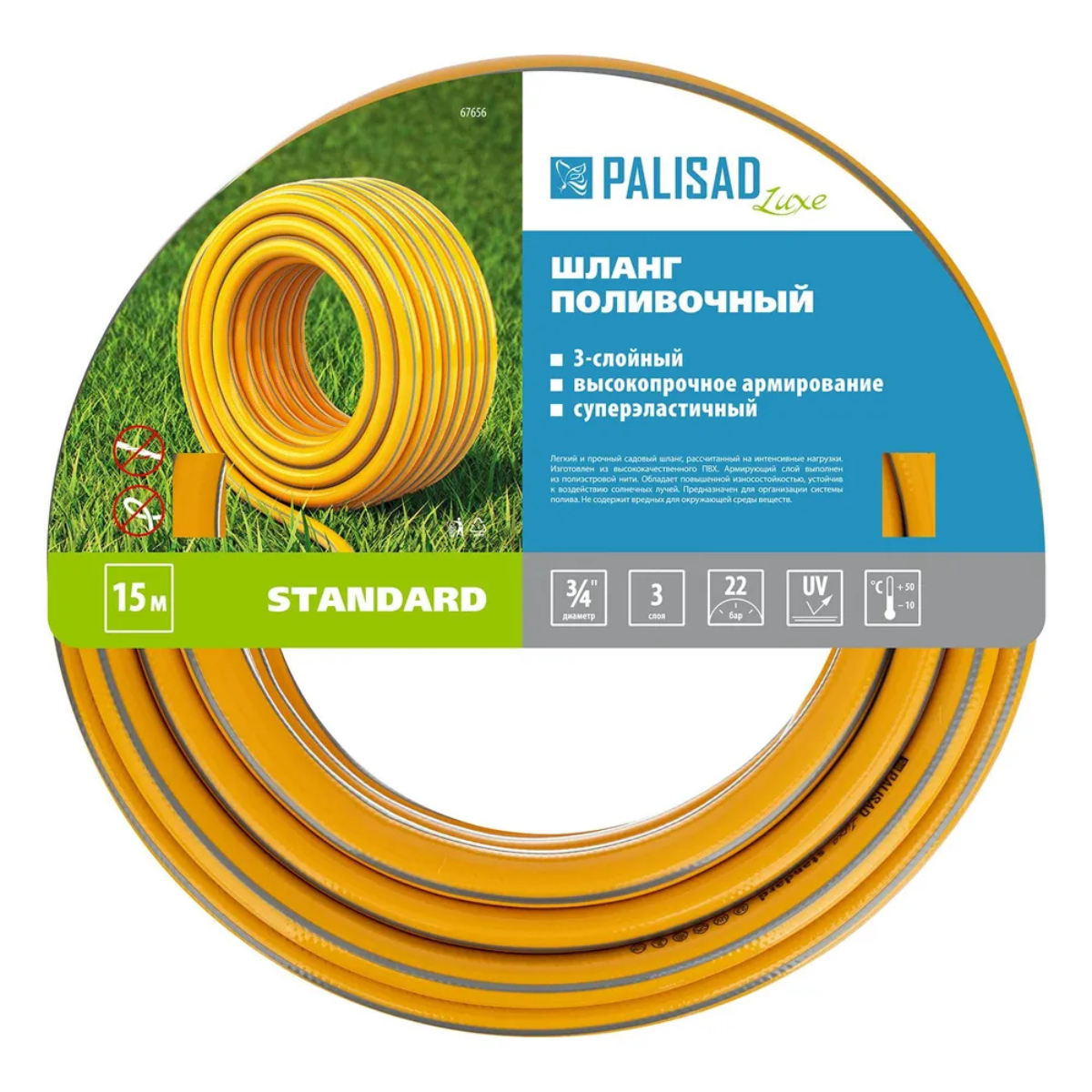 Предназначен для орошения почвы на садовых и парковых участках.Изготовлен из ПВХ cамого высокого качества.Благодаря армированию полиэстеровой нитью не перегибается и не перекручивается.Устойчив к УФ-излучению.Рассчитан на эксплуатацию в условиях интенсивной нагрузки.Устойчивы к повреждениям.Совместим со всеми элементами системы полива Palisad Luxe и Palisad.Характеристики:Вес: 3,8 кгДиаметр: 3/4"Длина: 15 м.