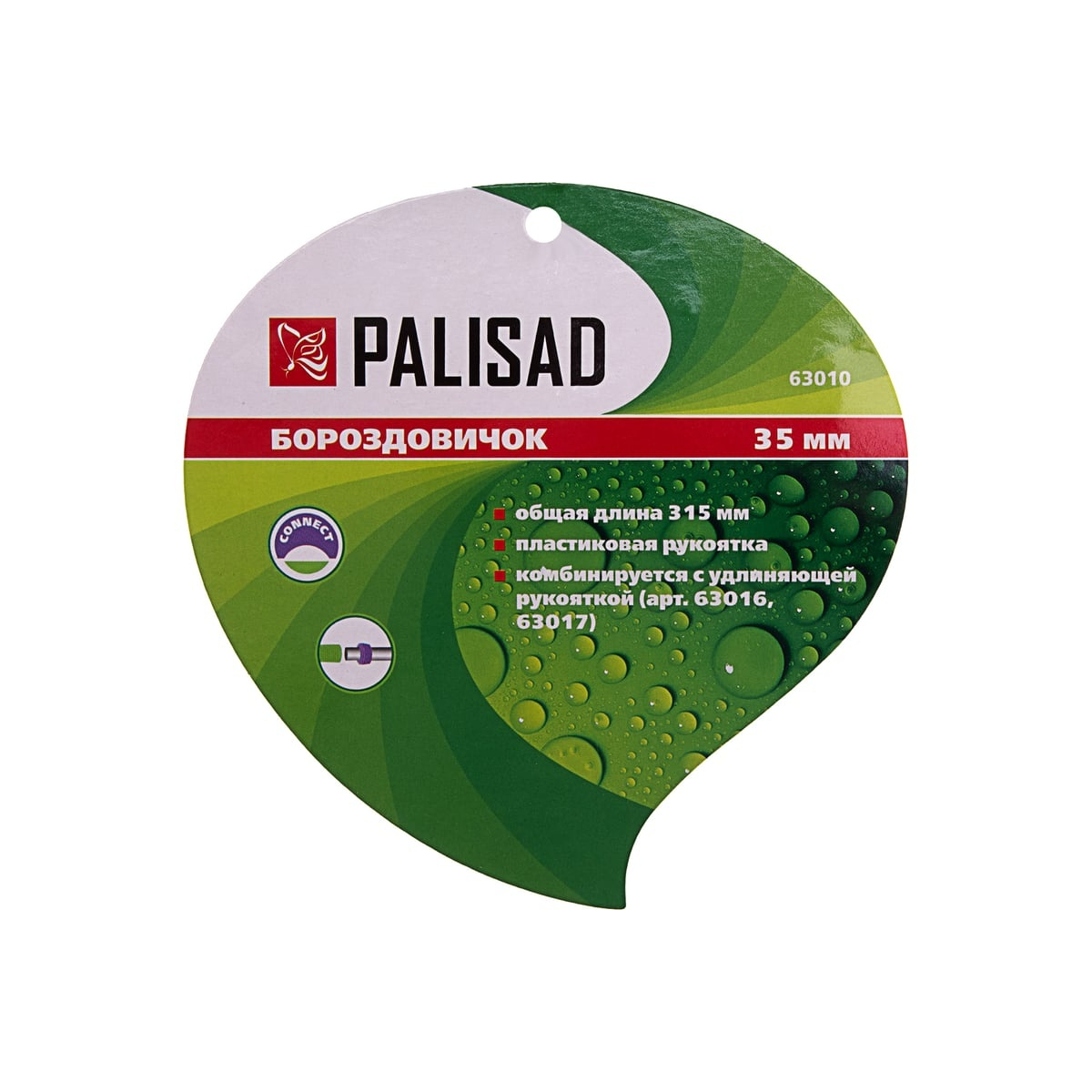Стальной бороздовичок Palisad CONNECT 63010 размером 35 х 315 мм, с пластиковой рукояткой, используется для посадочных работ. С его помощью удобно подготавливать канавки и борозды под посев, рыхлить почву на небольших участках. За счет острых кромок бороздовичок помогает справиться с сорной растительностью в узких междурядьях и в околокорневом пространстве.Преимущества PALISAD 63010Надежность и долговечность – бороздовичок выполнен из прочной среднеуглеродистой сталиЗащита от коррозии – рабочая часть покрыта порошковой эмалью, что увеличивает срок службы инструментаДополнительные возможности – открутив резьбовый колпачок, бороздовичок можно удлинить с помощью специальных рукояток: арт 63016 на 500 мм и арт 63017 на 800 мм (в комплект не входят)Комфортная работа – рукоятка из полипропилена с рельефным покрытием обеспечивает надежный хват даже без перчатокТехнические характеристики PALISAD 63010Полольник: даДля комбисистем: нетДля подрезки кромок газона: нетС зубцами: нетМатериал: стальДлина: 315 ммДлина рукоятки: 135 ммРабочая ширина: 35 ммРучка/черенок в комплекте: естьГабариты без упаковки: 35 х 315 ммВес нетто: 0.18 кг