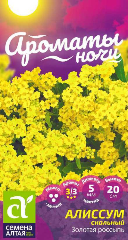 Алиссум «Золотая россыпь» — яркоцветущий ковровый многолетник, который станет эффектным украшением сада, альпийской горки, бордюров и каменистых композиций. Растение образует плотные, хорошо разветвлённые кустики высотой до 20 см, которые быстро разрастаются и покрывают участок сплошным декоративным ковром. Нижняя часть побегов постепенно одревесневает, благодаря чему посадки сохраняют аккуратный вид из года в год.