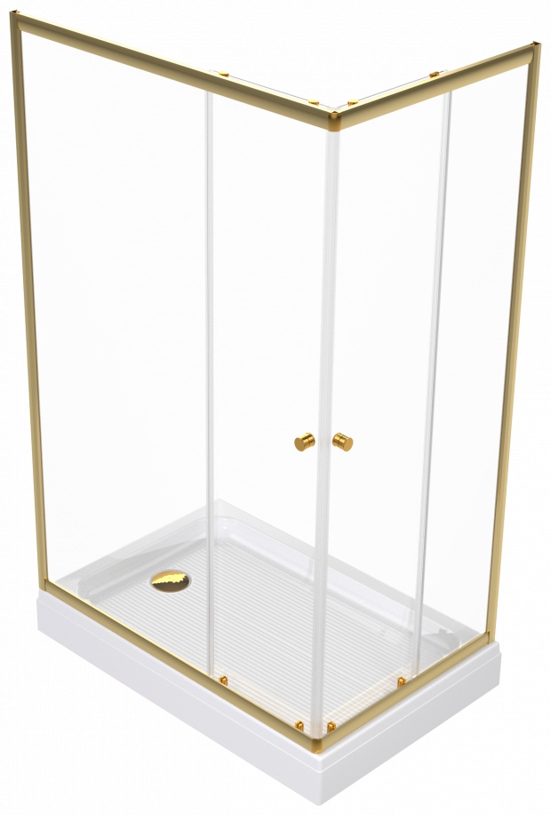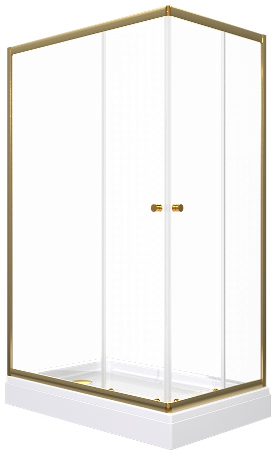 Модель выполнена в прямоугольной форме и комплектуется низким акриловым поддоном с антискользящим покрытием и сифоном диаметром 90 мм. Прозрачное закалённое стекло визуально облегчает конструкцию, а алюминиевый профиль в цвете матовое золото придаёт интерьеру стильный и премиальный вид. Раздвижные двери обеспечивают удобный вход и экономят пространство, а универсальная ориентация позволяет устанавливать ограждение в различных планировках ванной комнаты.