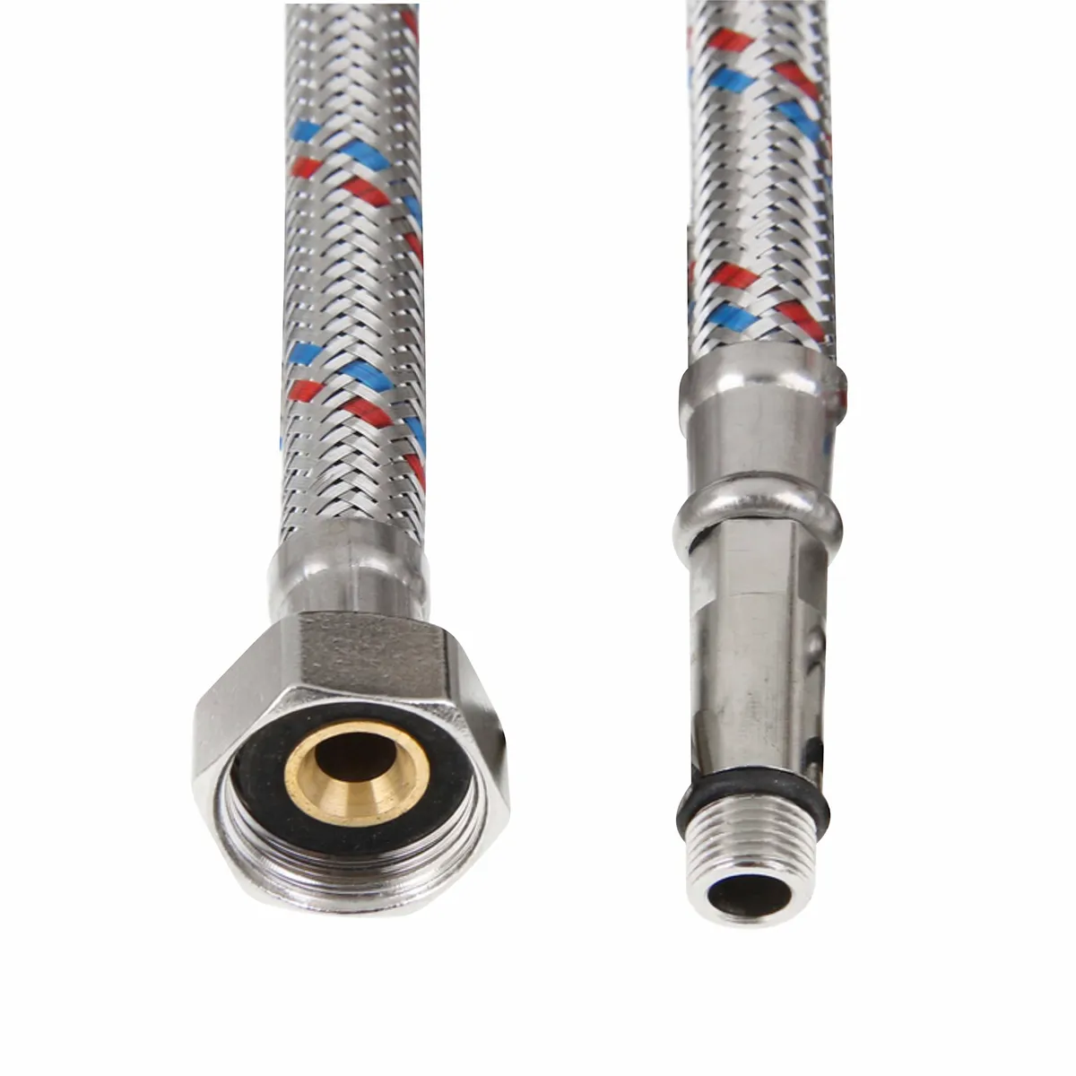 Гибкая подводка для подключения смесителя c концевыми элементами гайка–штуцер, 1/2” х M10, длина штуцера 35 мм.гайка из сталипрокладка из EPDMниппель из сталиколичество нитей в стальной оплетке 7внутри оплетки шланг из EPDMмаксимально допустимое давление - 15 Бар (по испытаниям свыше 120 Бар).