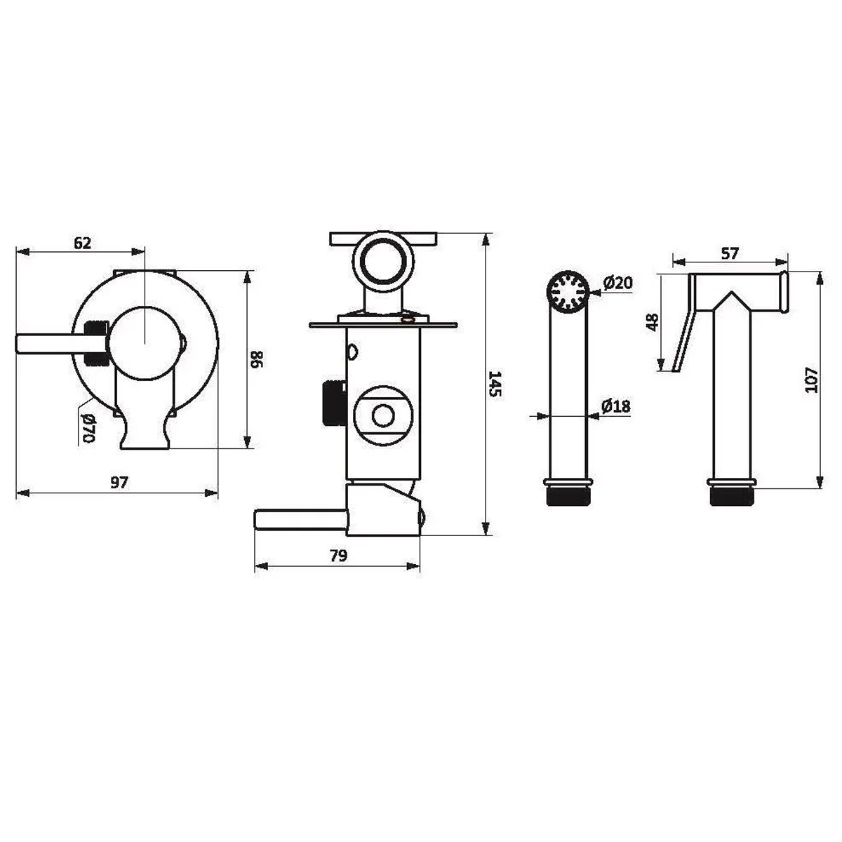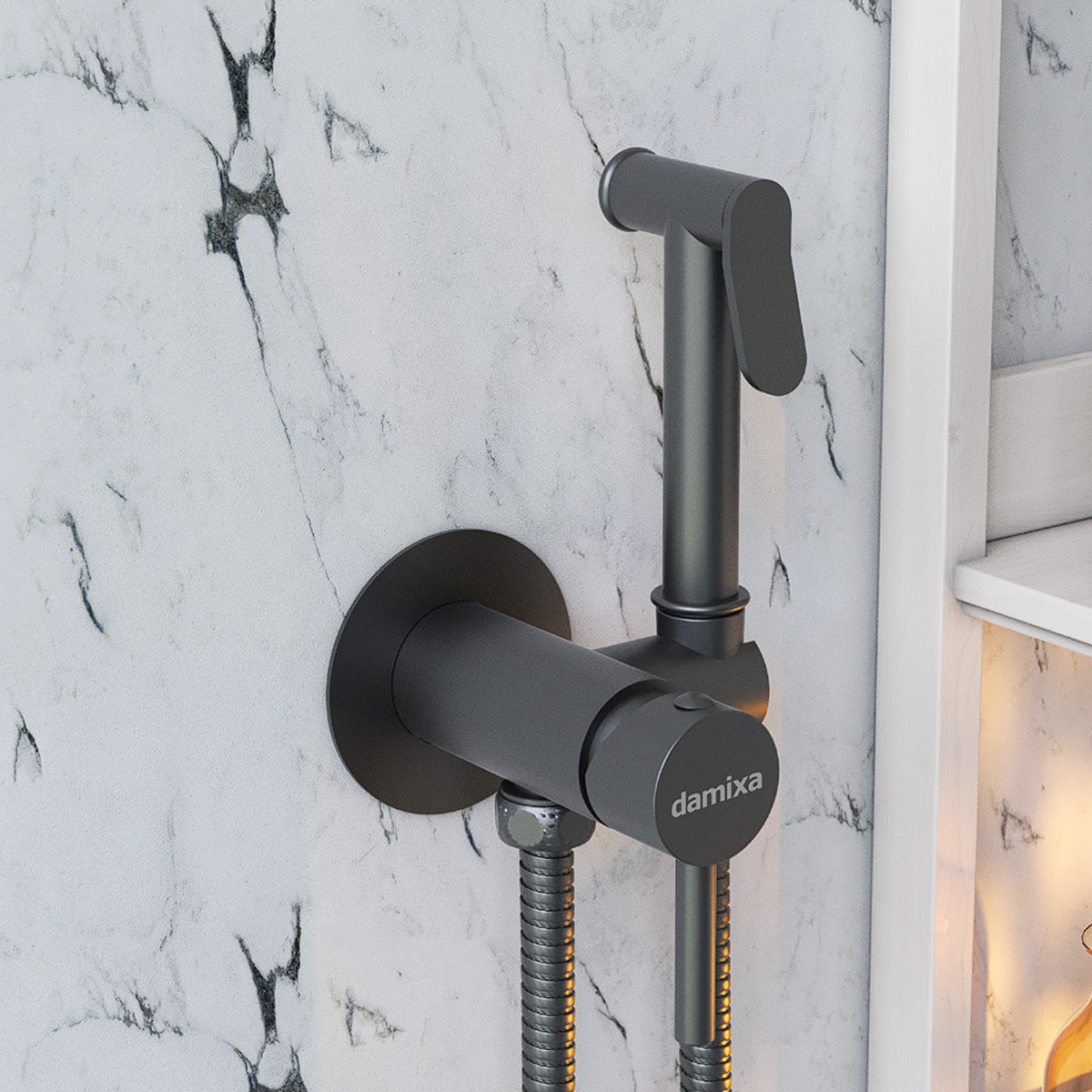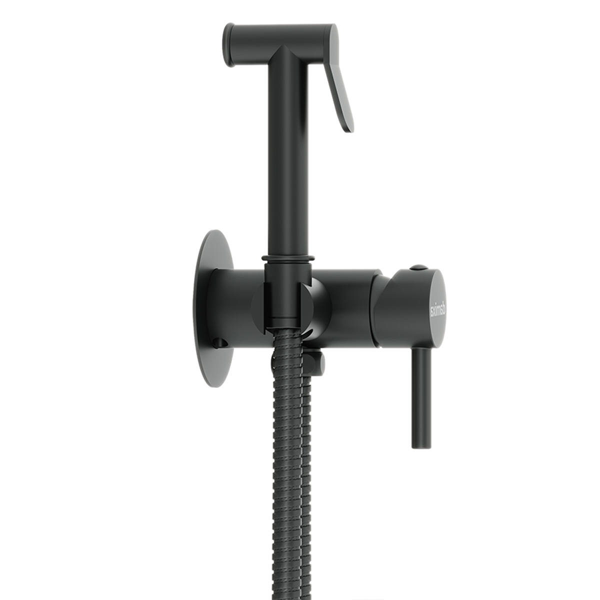 Черный матовый смеситель с гигиеническим душем занимает минимум места в санузле при этом выполняя свои функции. Матовое покрытие меньше пачкается и выглядит стильно в любом интерьере. Держатель смесителя крепится на стену, стильная ручка-стик удобна в управлении. Керамический картридж Light Flow обеспечивает плавное управление и оптимальную регулировку температуры и мощности потока.Характеристики:Ширина изделия(мм): 86Высота изделия(мм): 79Тип управления: однорычажныйКартридж: ЕстьРежимы душа: 1Длина душевого шланга: 1500ммРазмер ручного душа: 20 мм