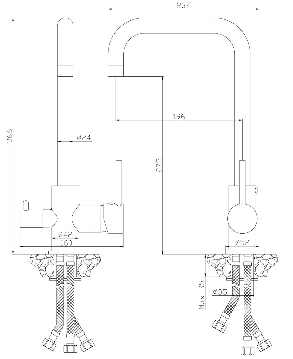 В комплекте:Пластиковый аэратор с функцией легкой очисткиКерамический картридж 35 ммКерамическая вентильная головкаГибкая подводка 35 см - 3 шт.Присоединительная группа для горизонтального крепленияПереходник для подключения шланга от фильтра с питьевой водойМеталлическая рукояткаХарактеристики:Монтаж: на мойкуЦвет: хромМатериал: латуньОтверстия для монтажа: 1Поворотный излив: даСтандарт подводки: 1/2"Тип подводки: гибкаяВысота излива, см.: 36, 6Длина излива, см.: 19, 6Габариты индивидуальной упаковки: 390х290х70 мм