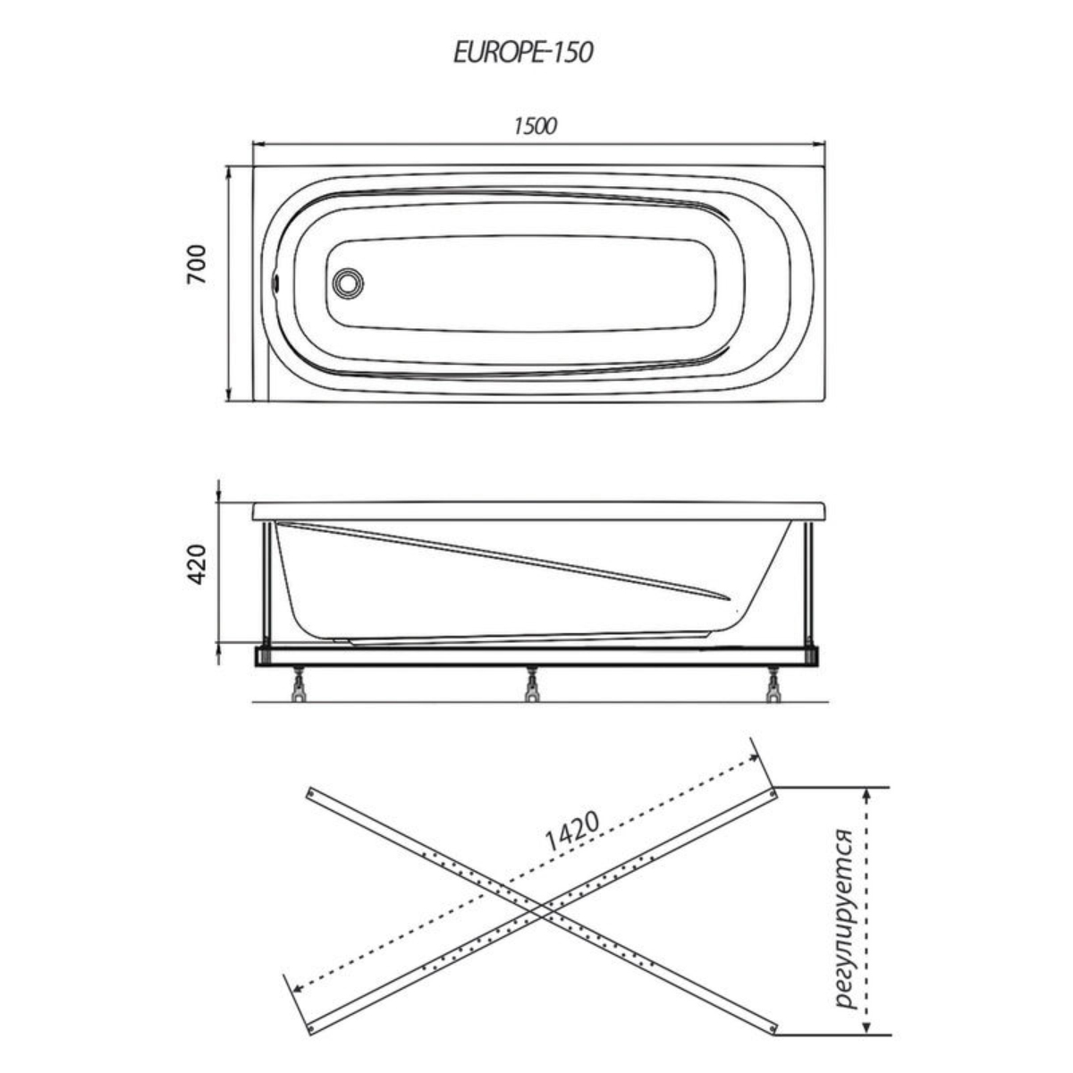 Акриловая ванна Triton - прямоугольная классическая модель. Белоснежная, идеально гладкая, со специальным антибактериальным покрытием, легко чистится без применения вредных моющих средств. Классическая форма, удобная чаша, дно с антискользящим покрытием - в ней есть все для приятных и безопасных водных процедур.Характеристики:Габариты ДхШхВ: 1500*700*570 ммГлубина: 420 ммОбъем: 175 литраДиаметр слива: 52 ммМатериал: АкрилТолщина стенок, мм: 5Состав поставки:Акриловая ванна – 1 шт.Установочный комплект