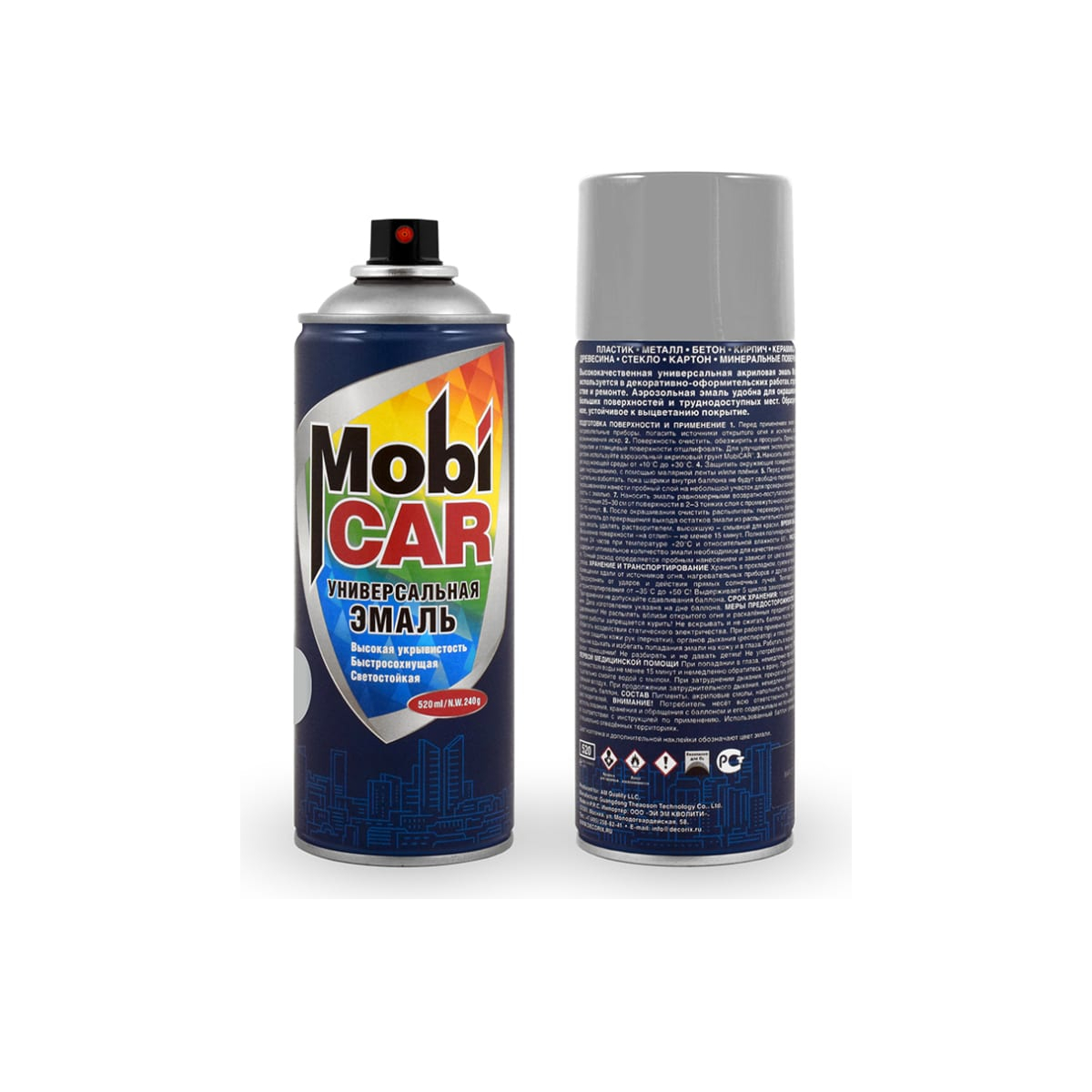 Универсальная эмаль Mobicar используется в декоративно-оформительских работах, строительстве и ремонте. Аэрозольная эмаль удобна для окрашивания небольших поверхностей и труднодоступных мест. Образует гладкое, устойчивое к выцветанию покрытие.Тип: кузовной ремонт автомобиляВид: автоэмальОбъем: 520 мл