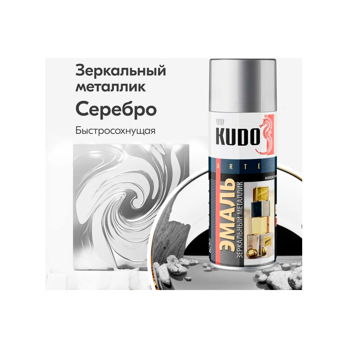 Высококачественная быстросохнущая эмаль предназначена для декоративной окраски металлических, деревянных, пластиковых, гипсовых и керамических поверхностей.Имеет яркий и насыщенный металлический блеск. Легко наносится на труднодоступные поверхности. Применяется для внутренних и наружных работ.Основа: акриловаяСушка между слоями: 10 минутВысыхание на отлип: 15-20 минутПолное высыхание: 2 часаРасход: ~ 2 м²Состав: синтетические смолы, пигменты, функциональные добавки, ксилол, метилацетат, бутиловый спирт, пропан, бутан, диметиловый эфир.ПрименениеВо избежание попадания следов аэрозоля рекомендуется защищать поверхности, не подлежащие окраске.Для достижения наилучших результатов эмаль наносить при температуре окружающей среды не ниже +10°С.Перед использованием баллон энергично встряхивать в течение 2–3-х минут.Эмаль наносится на чистую, сухую и обезжиренную поверхность. Для достижения наилучших результатов и получения более долговечного покрытия рекомендуется наносить эмаль на предварительно загрунтованные поверхности. Для грунтования поверхности рекомендуется использовать "Грунт акриловый KUDO®".Эмаль наносится с расстояния 25–30 см в 1–2 слоя с промежуточной сушкой 10 минут при температуре +20°С. Время сушки "на отлип" при температуре +20°С – 15–20 минут. Время полного высыхания при температуре +20°С – 2 часа.Не рекомендуется наносить эмаль на поверхности, подвергающиеся регулярному механическому воздействию. Нанесение лака поверх эмали снижает декоративный эффект покрытия.Важно! Эмаль с всплывающим пигментомВнимание! По окончании работы во избежание засорения головки распылителя перевернуть баллон вверх дном и распылять до тех пор, пока не перестанет поступать эмаль.