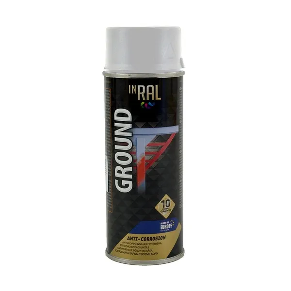 Грунт-аэрозоль Ground - аэрозольная быстросохнущая антикоррозийная грунтовка стальных, чугунных и др.поверхностей. Также применяется в качестве грунтовки для декоративных эмалей серии INRAL UNIVERSAL. Обладает хорошей адгезией с поверхостью основания. Преимущества:устойчива к воздействию атмосферных факторов;водоустойчива;термостойкость до 10° C.