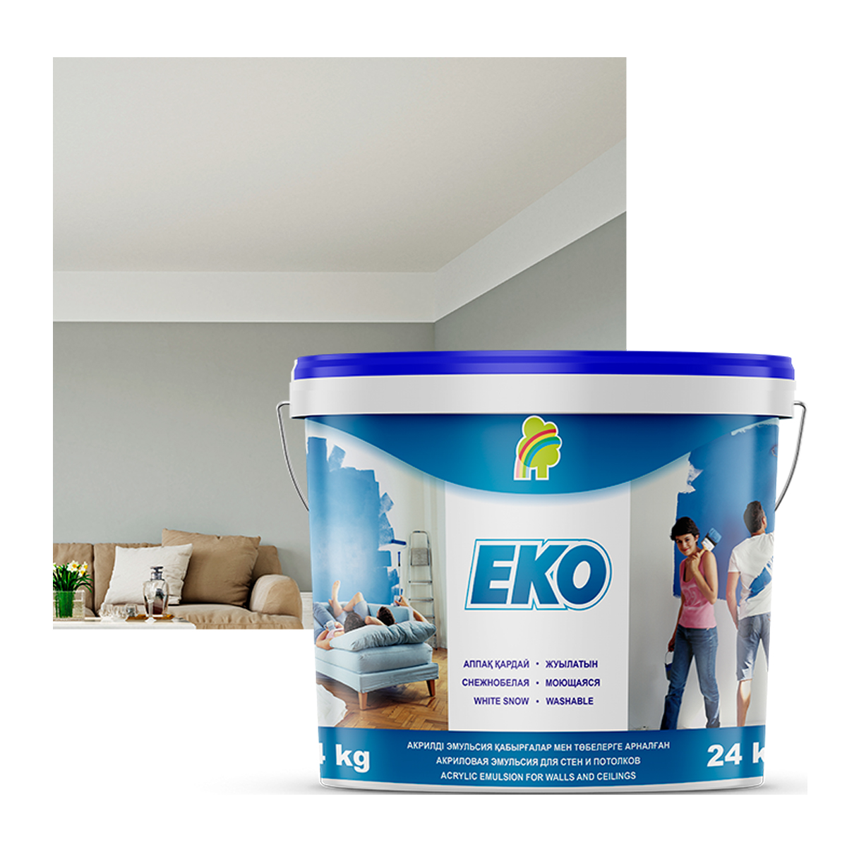 Экологически чистая белоснежная краска "EKO", благодаря мягкой матовой текстуре окружит вас уютной атмосферой снежного севера. За счет матовой степени блеска покрытия вы не заметите мелкие несовершенства на своих стенах. Это тот случай, когда белый цвет становится цветом великолепия и богатства.Преимущества:Высокая белизна; высокая укрывистость; без запаха, не токсична, пожаровзрывобезопасна; безвредна для здоровья и окружающей среды; образует прочное, паропроницаемое, "дышащее", матовое покрытие; не создает подтеков; колеруется водоразбавимыми пигментными пастами.Назначение:Для окрашивания предварительно подготовленных поверхностей потолков и стен в жилых, общественных и производственных помещениях.Применение:Наносить на сухие и тщательно очищенные от старого основания и посторонних включений поверхности, предварительно обработанные укрепляющей "Primer Радуга-27", стабилизирующей "Primer Радуга-28", проникающей "Primer Радуга-017" грунтовками. Перед применением краску тщательно перемешать. При необходимости разбавить водой не более 5%. Время нанесения последующего слоя через 1-2 часа. Наносить кистью, валиком, распылением при температуре поверхности и окружающей среды не ниже +10°С. Все заявленные свойства краска приобретает после 7 суток с момента высыхания при соблюдении условий применения.Меры предосторожности:Во время проведения работ и после их окончания, проветривать помещение. При попадании в глаза промыть большим количеством воды. Хранить в плотно закрытой таре. Беречь от детей.Расход: 300 гр/м² на 2 слоя.Высыхание: Не более 1 часа при t+20°С и влажности 65%.Состав: Вода, диоксид титана, наполнители, связующее, специальные добавки.Гарантийный срок: 12 месяцев со дня производстваХранение: Хранить и транспортировать в плотно закрытой таре при температуре не ниже +5⁰С.Вес: 3,5 кг.