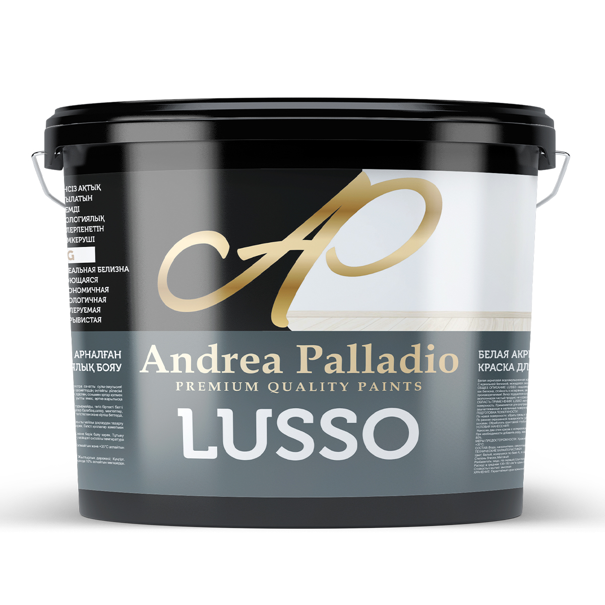 Акриловая краска Lusso Premium – латексная краска, для окраски кирпичных, бетонных, оштукатуренных, гипсокартонных, асбестоцементных поверхностей внутри помещений с повышенной влажностью (ванные комнаты. кухни, санузлы, подвальные помещения, подъезды, закрытые веранды, гаражи и т.п. Расход 120 - 150 г/м2Обьем: 2,2 л