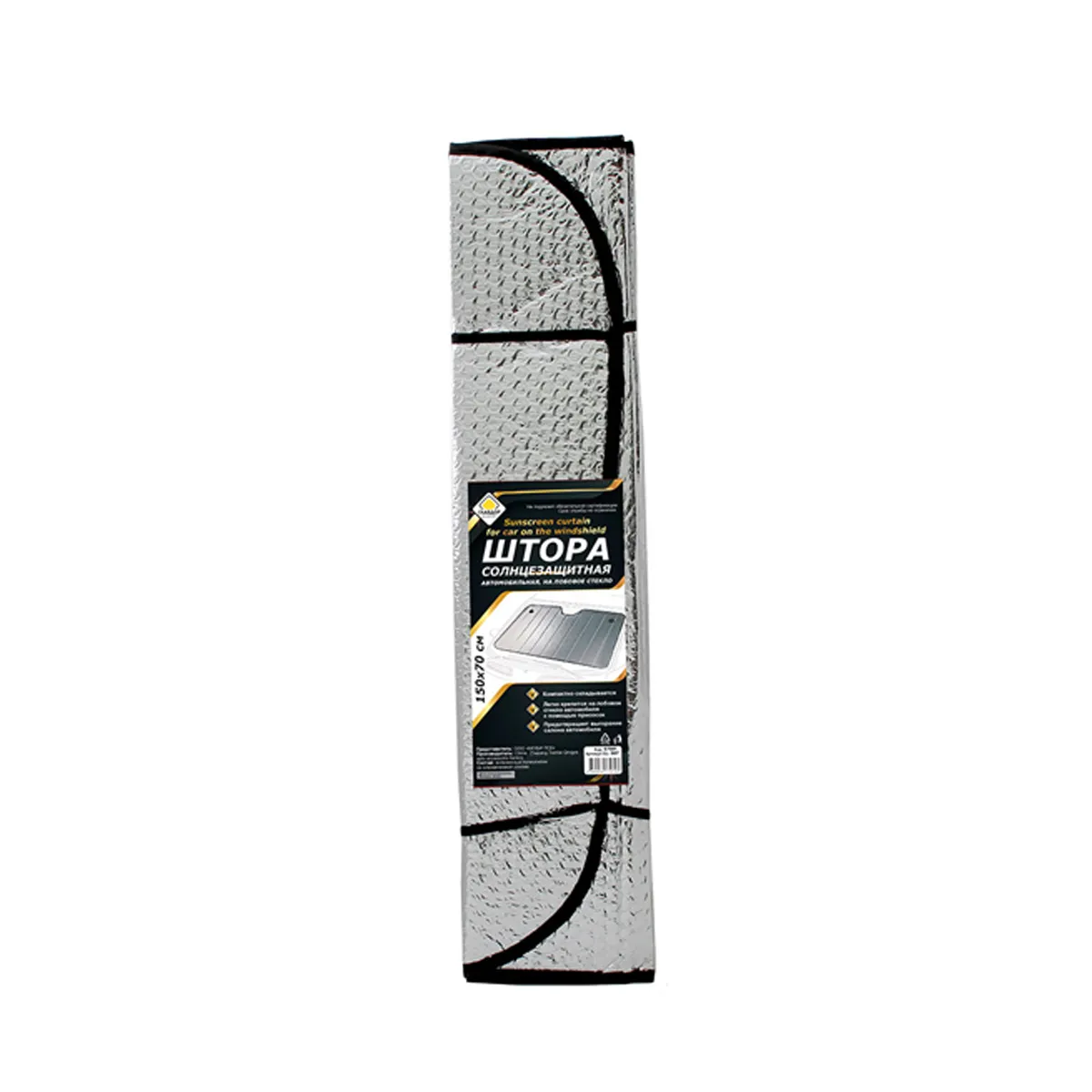 Солнцезащитная шторка "Главдор" изготовленная из металлизированный фольги и плотного основания, фиксируется с помощью двух присосок на лобовое стекло (присоски в комплекте). Шторка отражает солнечные лучи и препятствует нагреванию и выгоранию поверхности деталей салона. Шторка компактная, легкая и удобна в хранении и подходит на любые стекла автомобиля.Характеристики:Размер: 150 х 70 см.