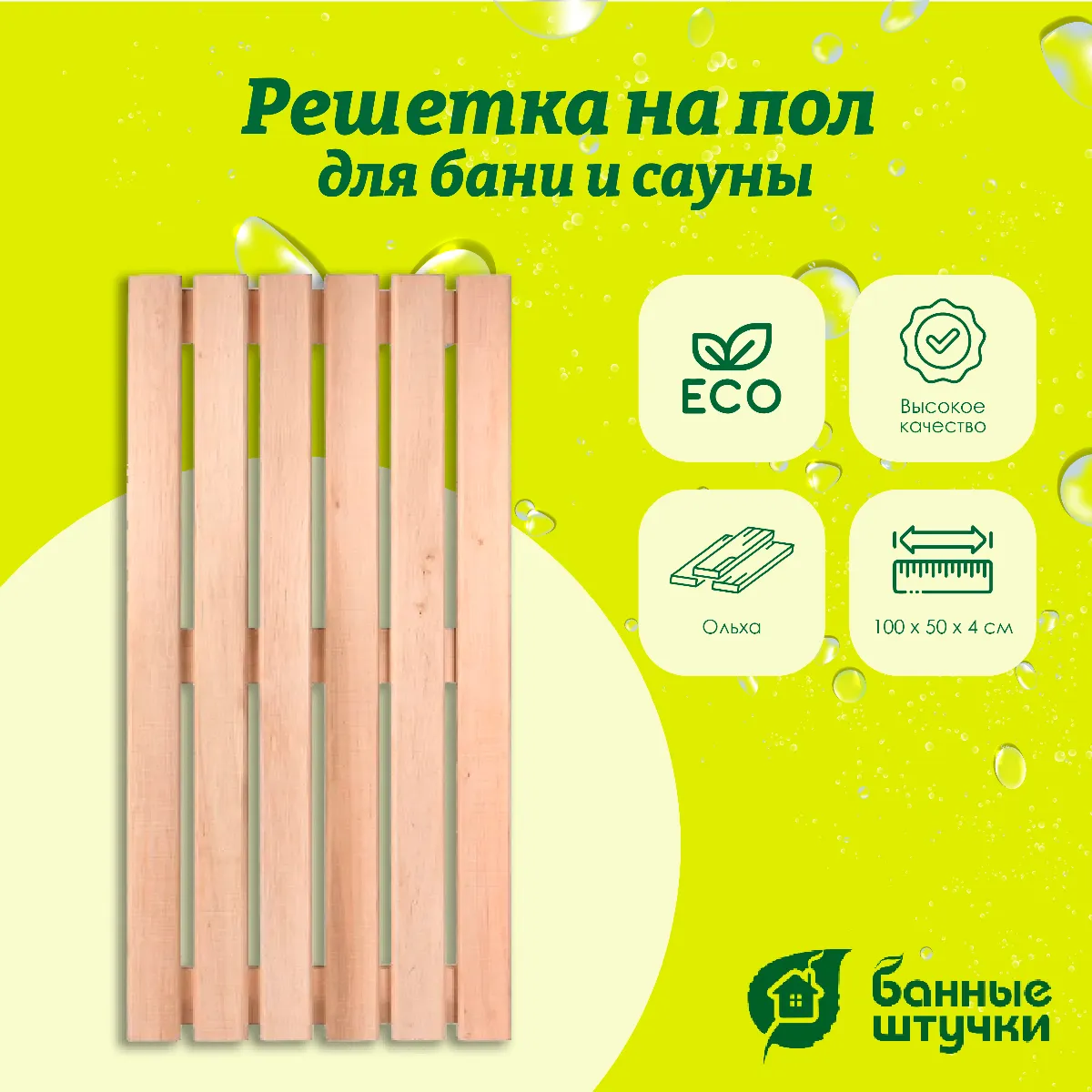 Решётка на пол Банные штучки предназначена для обустройства полов в банях и саунах, обеспечивая комфорт, безопасность и дополнительную защиту от скольжения. Она позволяет воде свободно стекать, сохраняя поверхность пола сухой и приятной для ног.